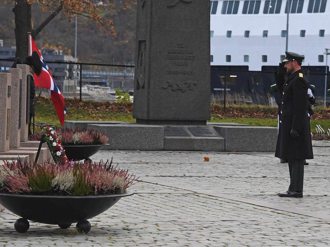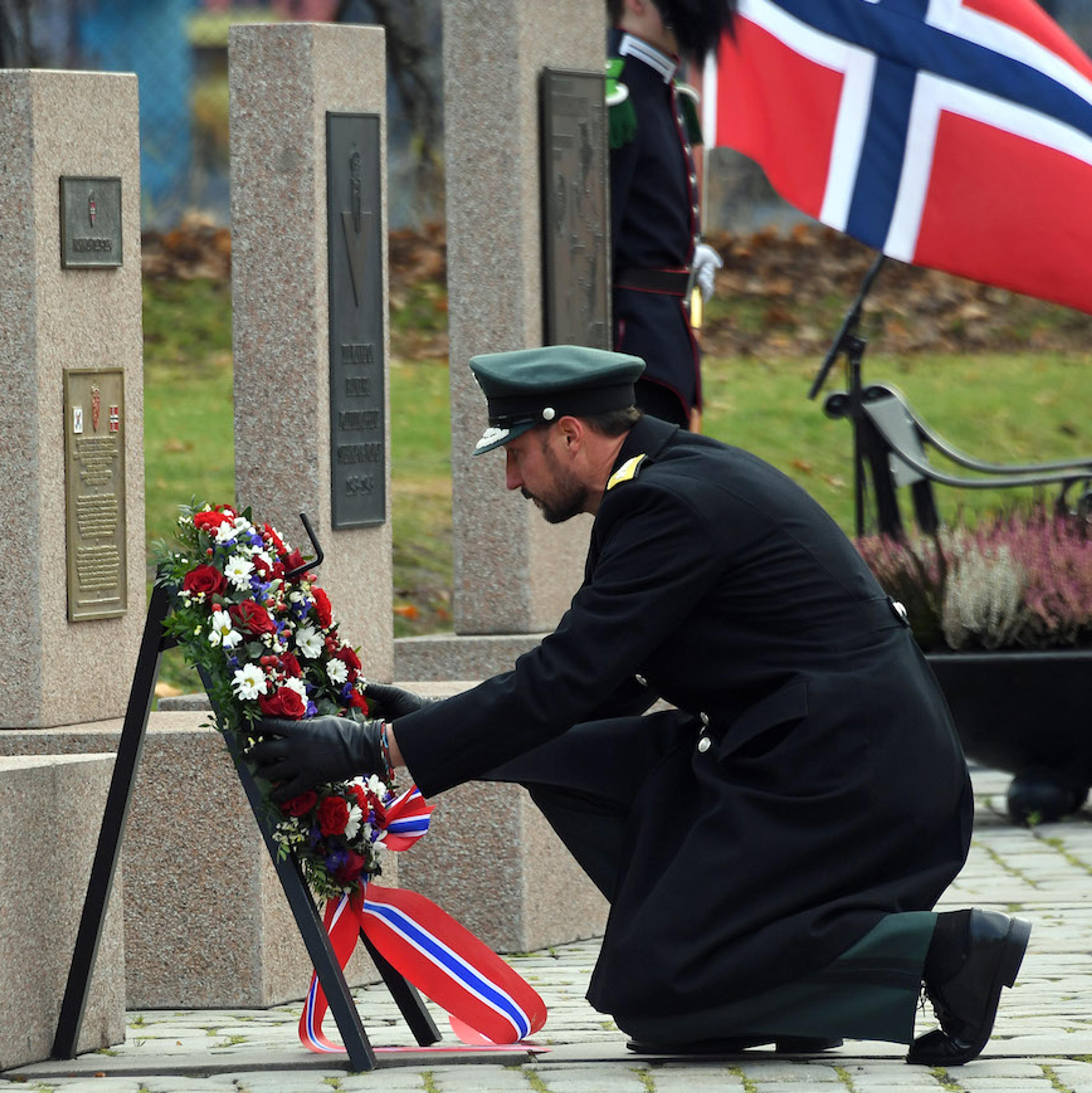 I formiddag la Den Høgvørde Kronprinsregenten ned krans i minnelunden på Akershus Festning under markeringa av Forsvarets minnedag.