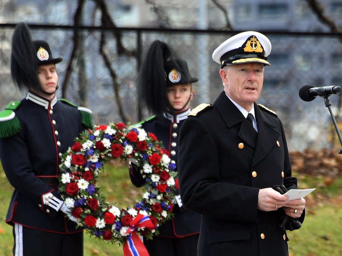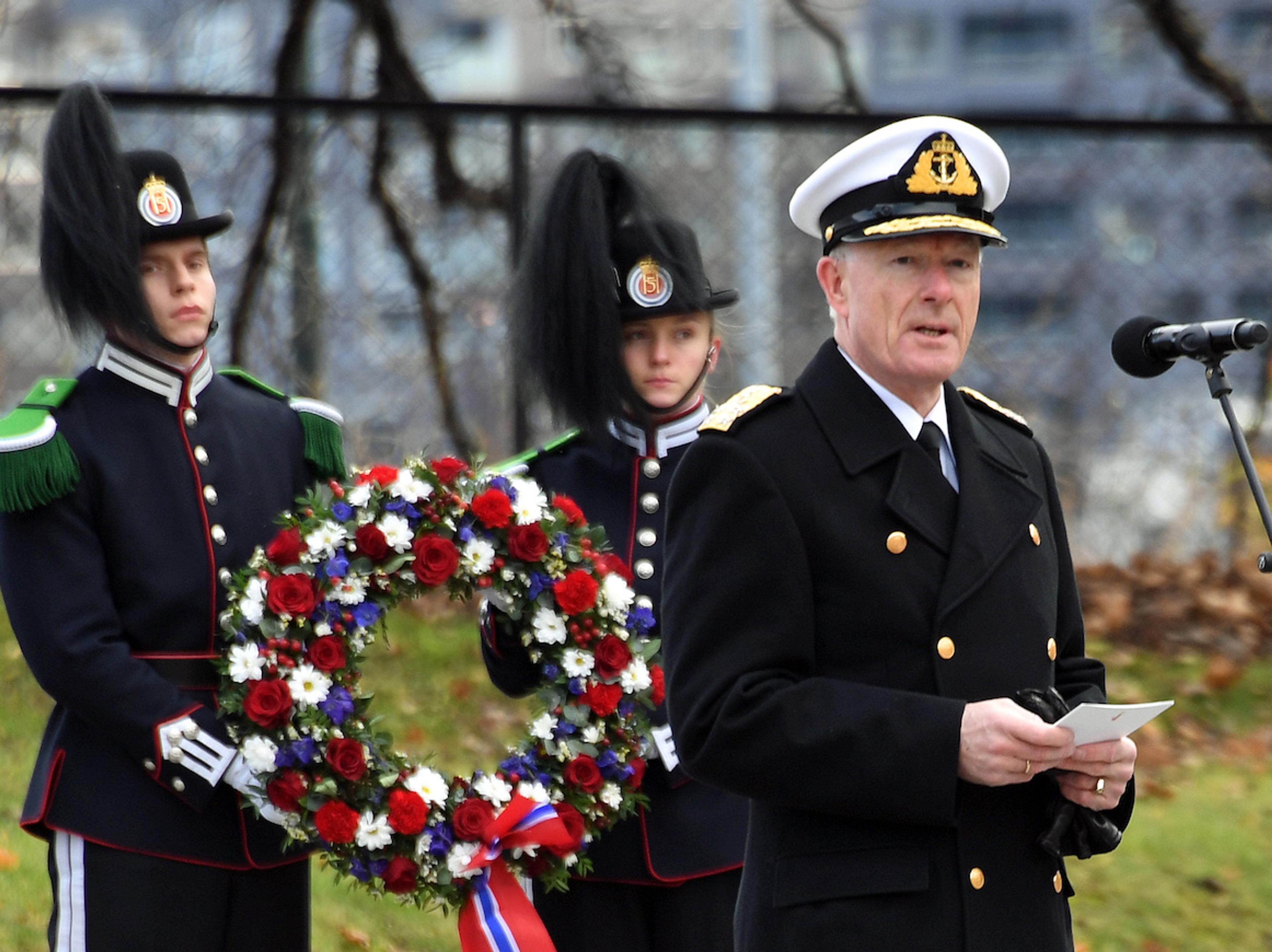 Ved seremonien i Museumsgarden på Akershus heldt forsvarssjef admiral Haakon Bruun-Hansen minnetalen. Forsvarssjefen bad deretter Kronprinsregenten om å leggje ned kransen. Stortingspresident Tone Wilhelmsen Trøen og statsråd Frank Bakke-Jensen var òg til stades under seremonien.