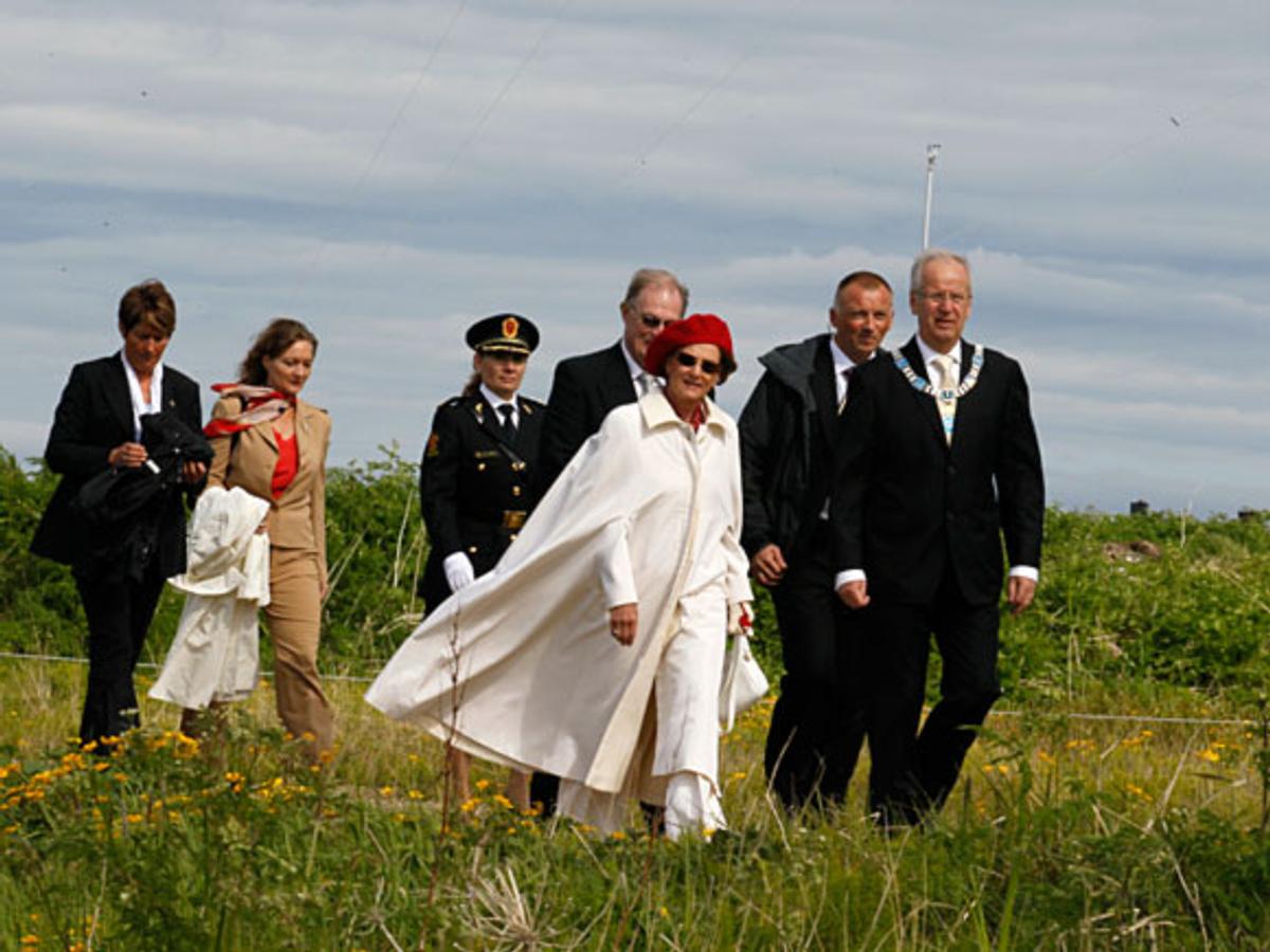 Hennes Majestet Dronningen foretok den offisielle åpningen av turistvegprosjektet Steilneset i dag, St. Hansaften. Minnestedet i Finnmark ble en av de siste, store installasjonene til kunstneren Louise Bourgeois.