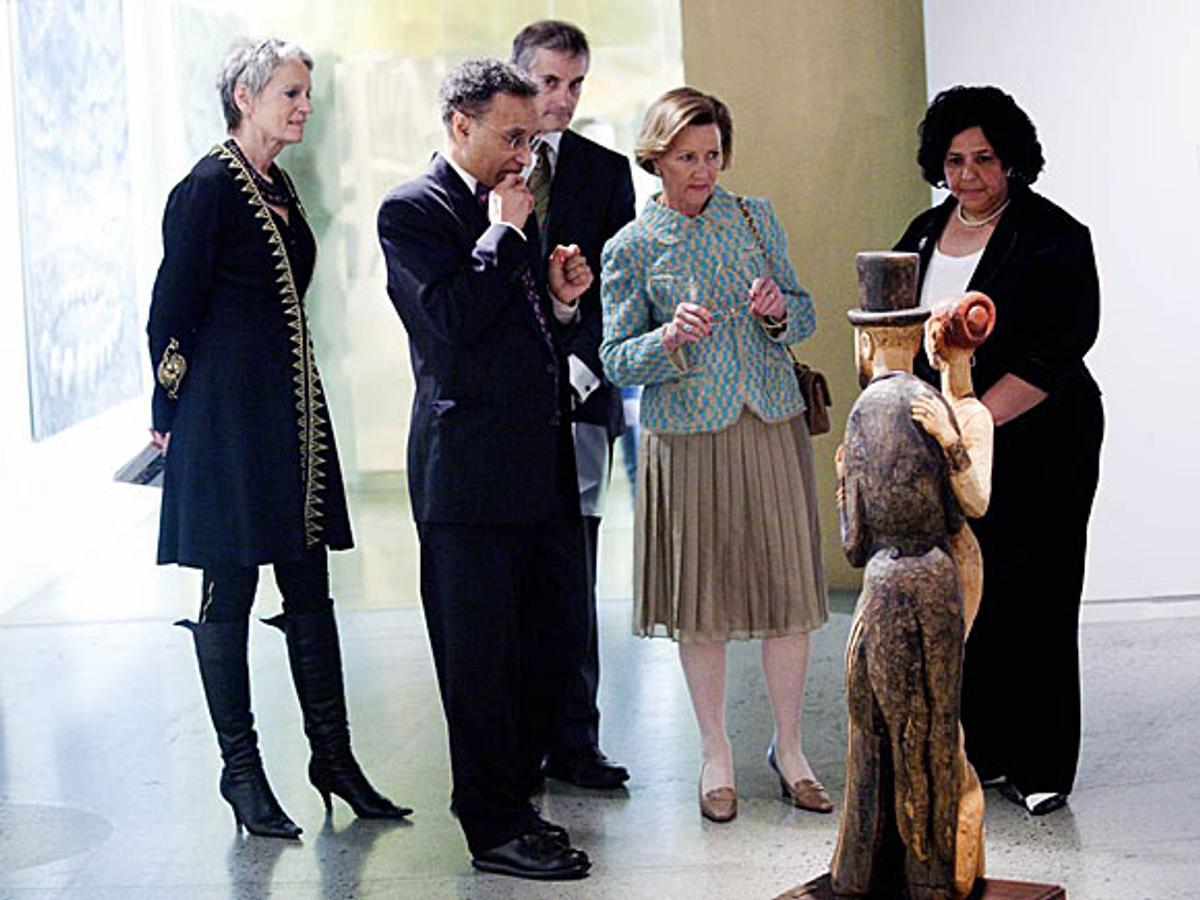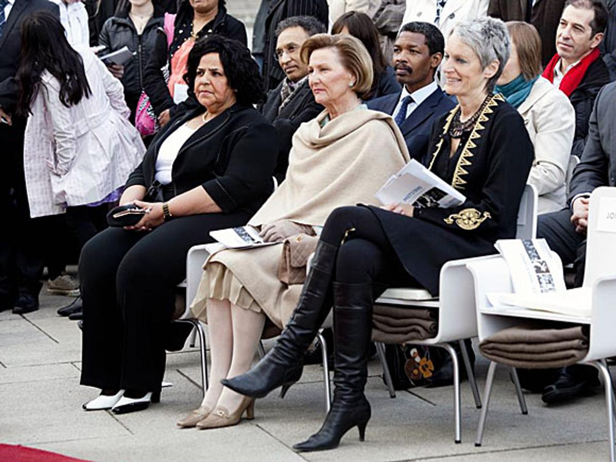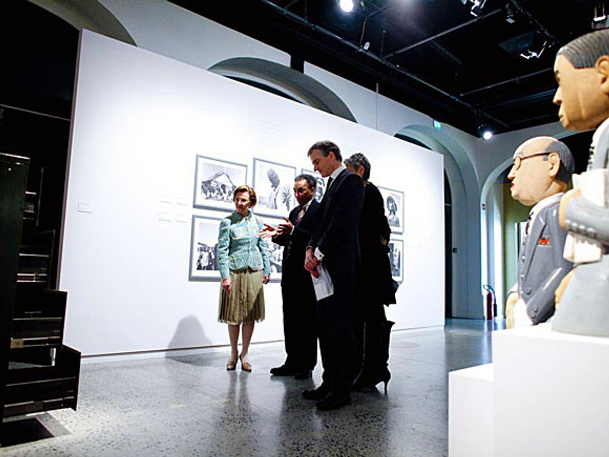 Bente Erichsen, direktør ved Nobels fredssenter, ønskte Dronninga velkommen saman med Sør-Afrikas ambassadør Beryl Rose Sisulu. Etter at utanriksministeren hadde erklært utstillinga for opna, fekk Dronninga ei omvising leidd av kurator Gavin Jantjes.