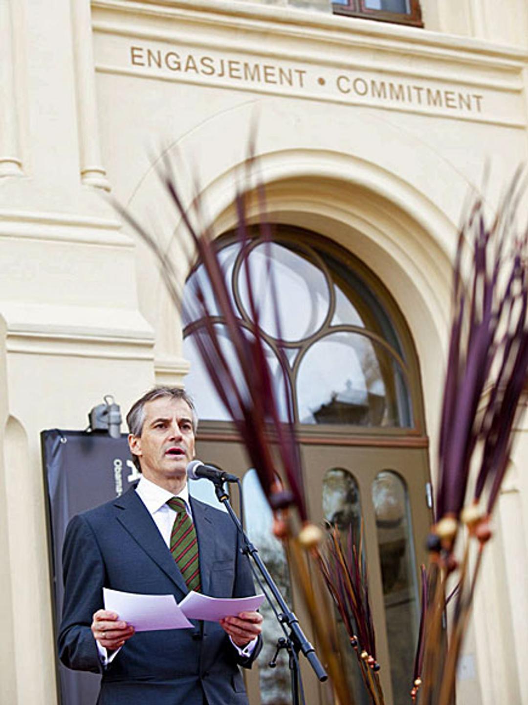 I dag opna utanriksminister Jonas Gahr Støre utstillinga ”Mot og motstand” på Nobels fredssenter. Hennar Majestet Dronninga var til stades ved opninga.