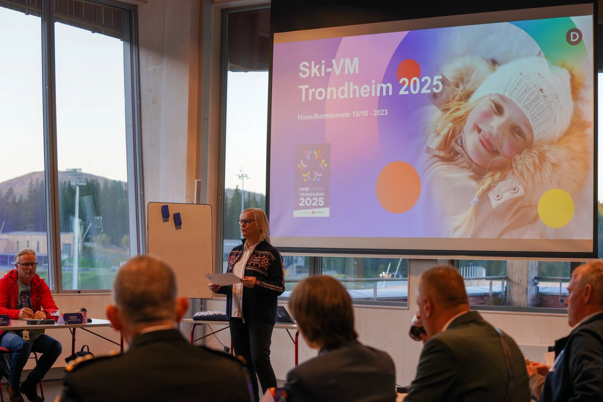 Skipresidenten innledet dagens møte og orienterte om status for mesterskapet - 434 dager før startskuddet går. I møtet ga også styreleder for ski-VM Trondheim 2025 Åsne Havnelid en presentasjon og daglig leder Åge Skinstad en status for det kommende mesterskapet - med fokus på blant annet de frivillige og bærekraft.