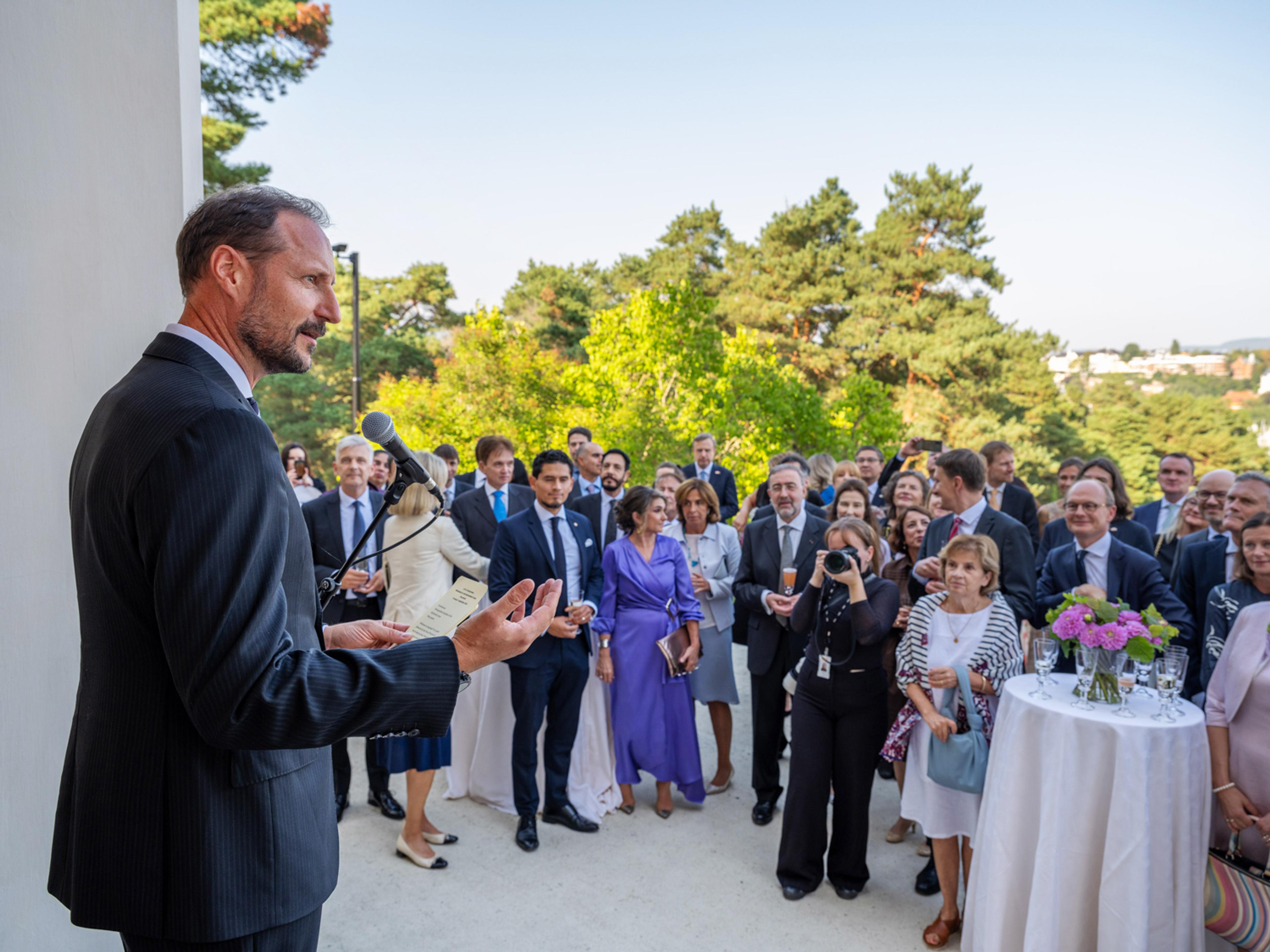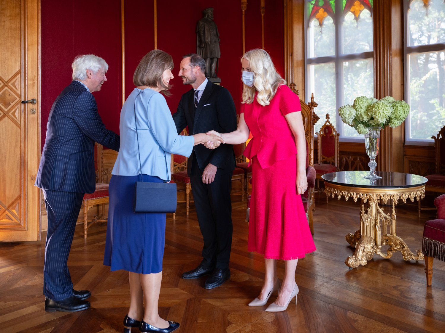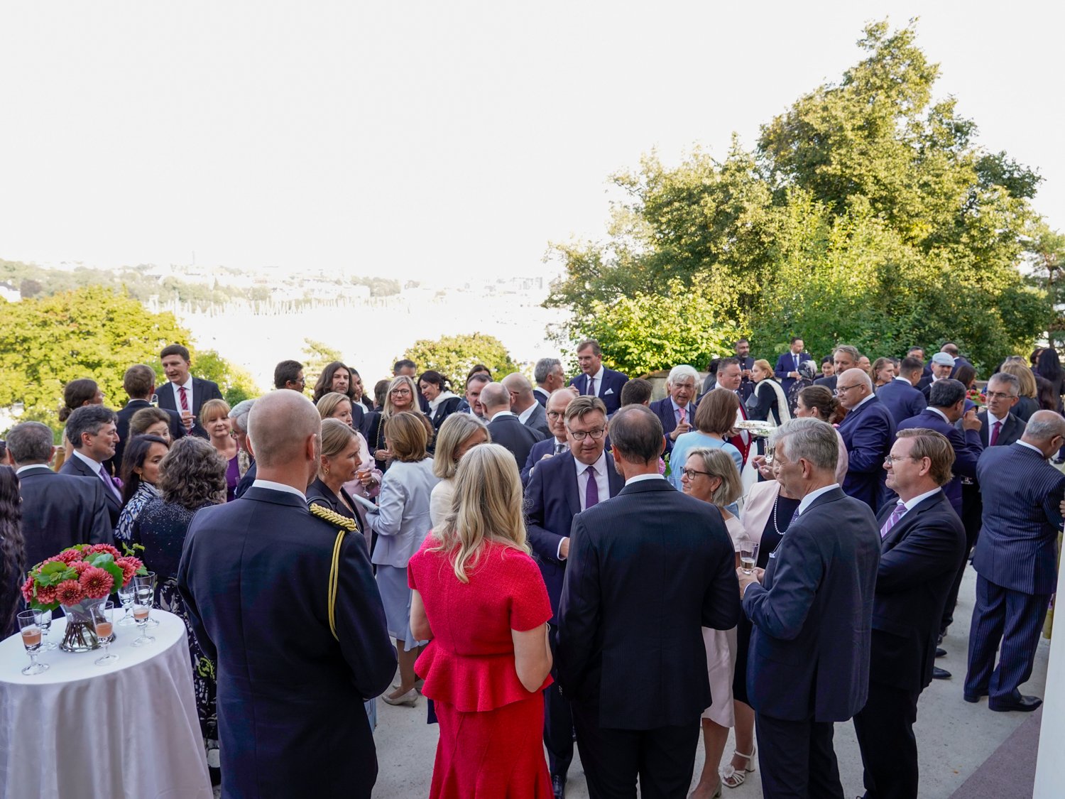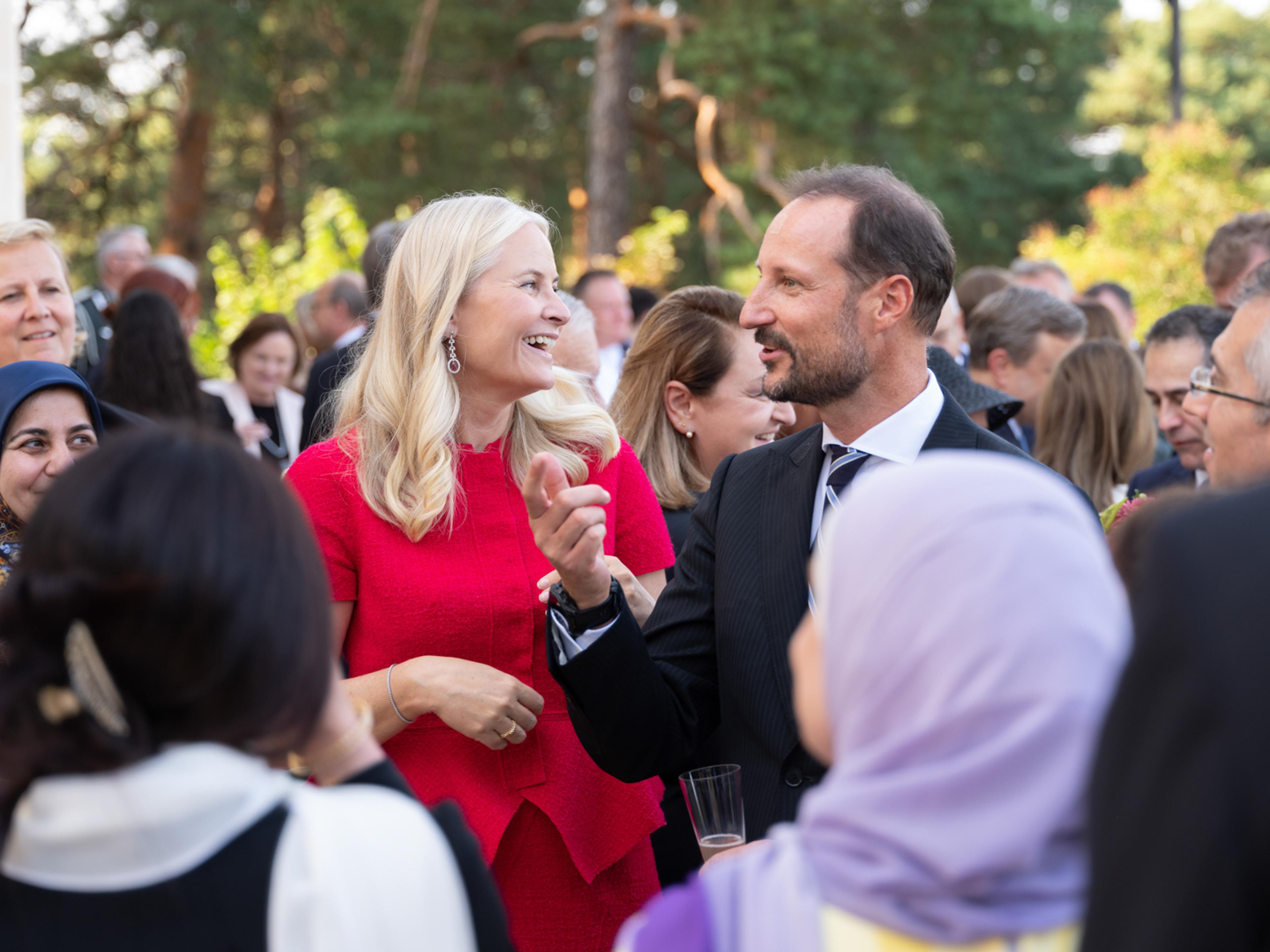 Kronprinsparet heldt i dag ei mottaking på Oscarshall for diplomatar som har ambassade i Noreg.