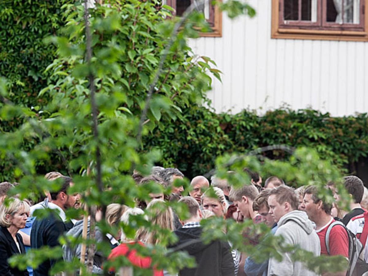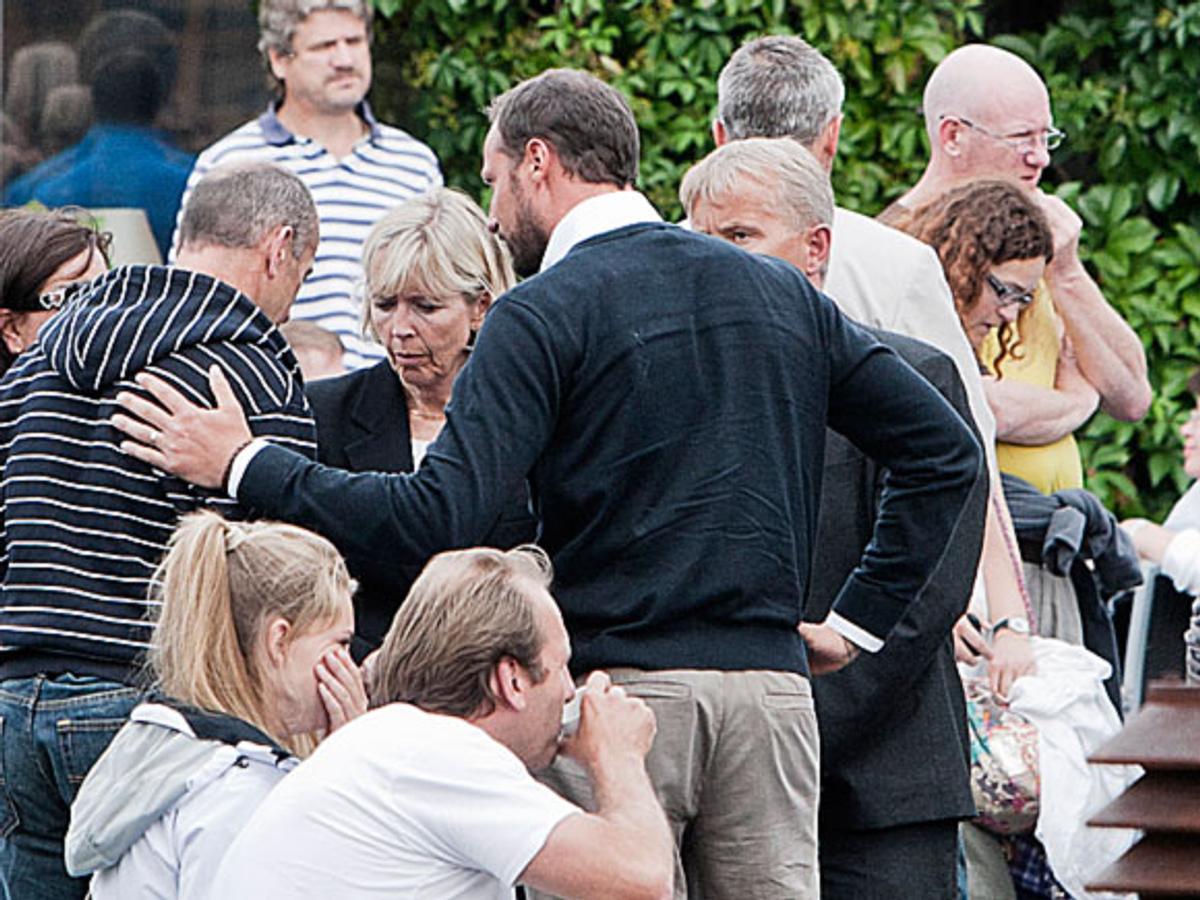 Kongeparet og Kronprinsen ble tatt i mot av statsminister Jens Stoltenberg som besøkte Sundvolden i følge med justisminister Knut Storberget og helseminister Anne-Grete Strøm-Erichsen.