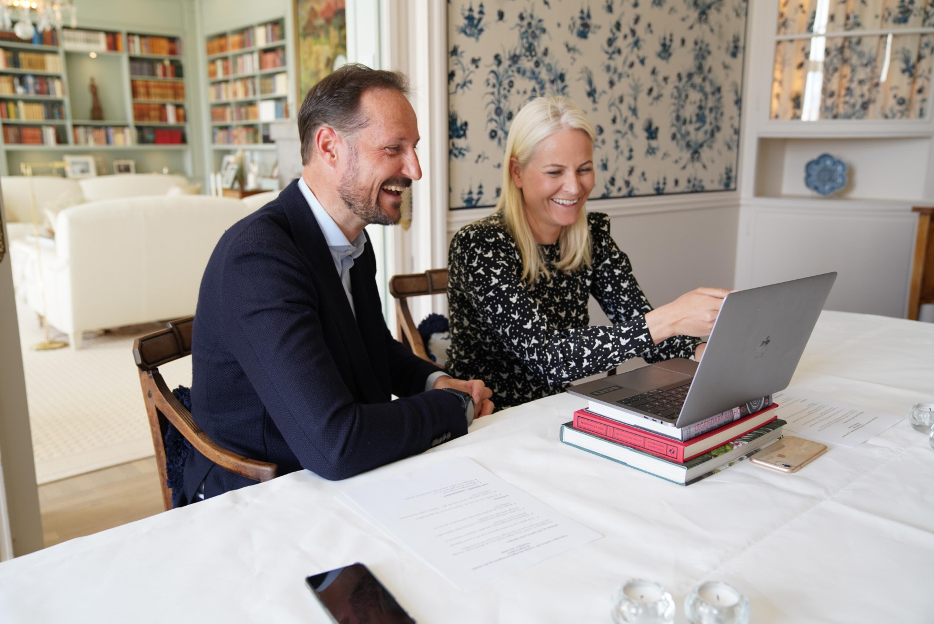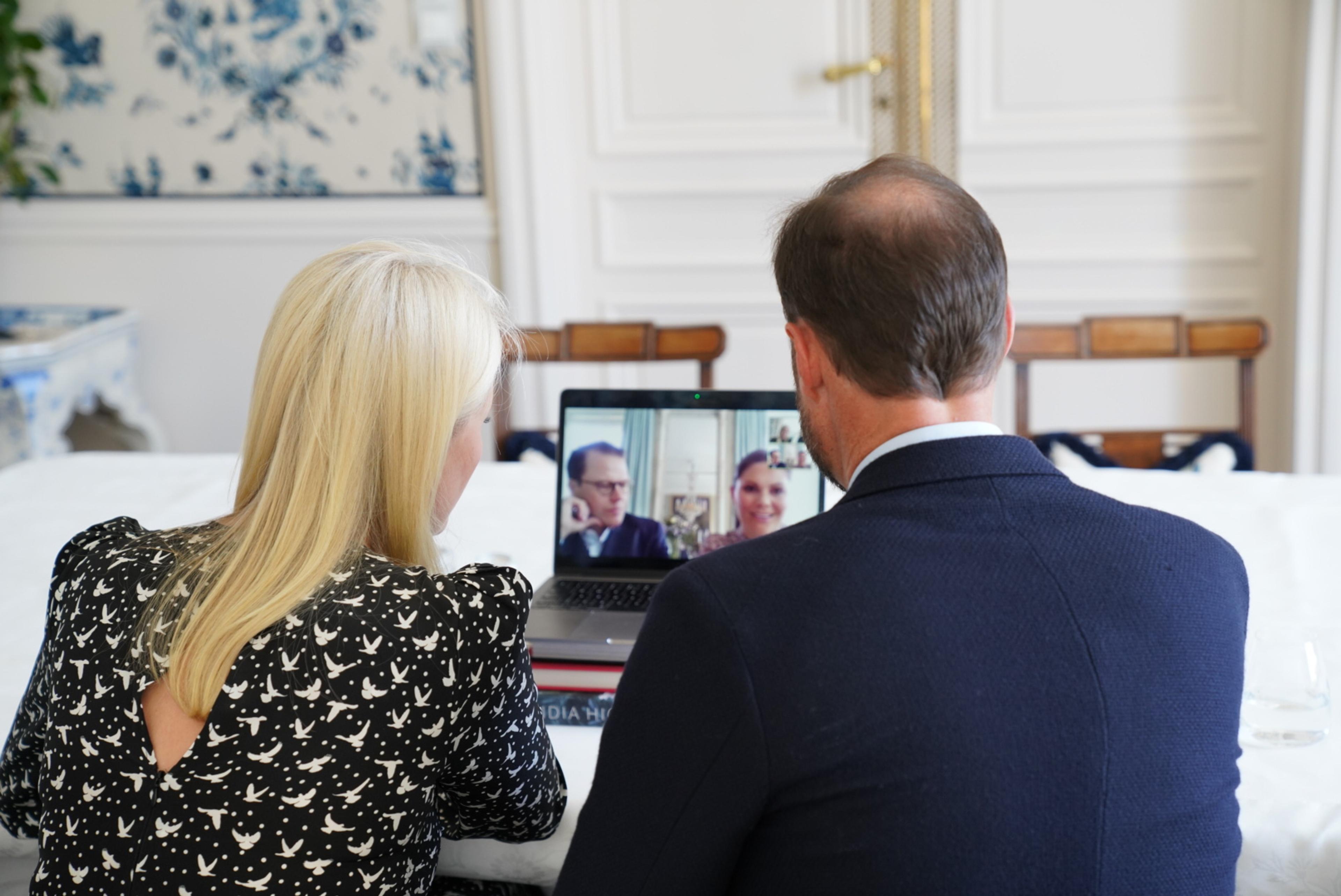 Onsdag heldt Kronprins Haakon og Kronprinsesse Mette-Marit eit videomøte med det svenske Kronprinsesseparet. I utgangspunktet skulle Kronprinsparet i desse dagar vore på offisielt besøk til Sverige, men dette er utsett grunna koronaviruset.