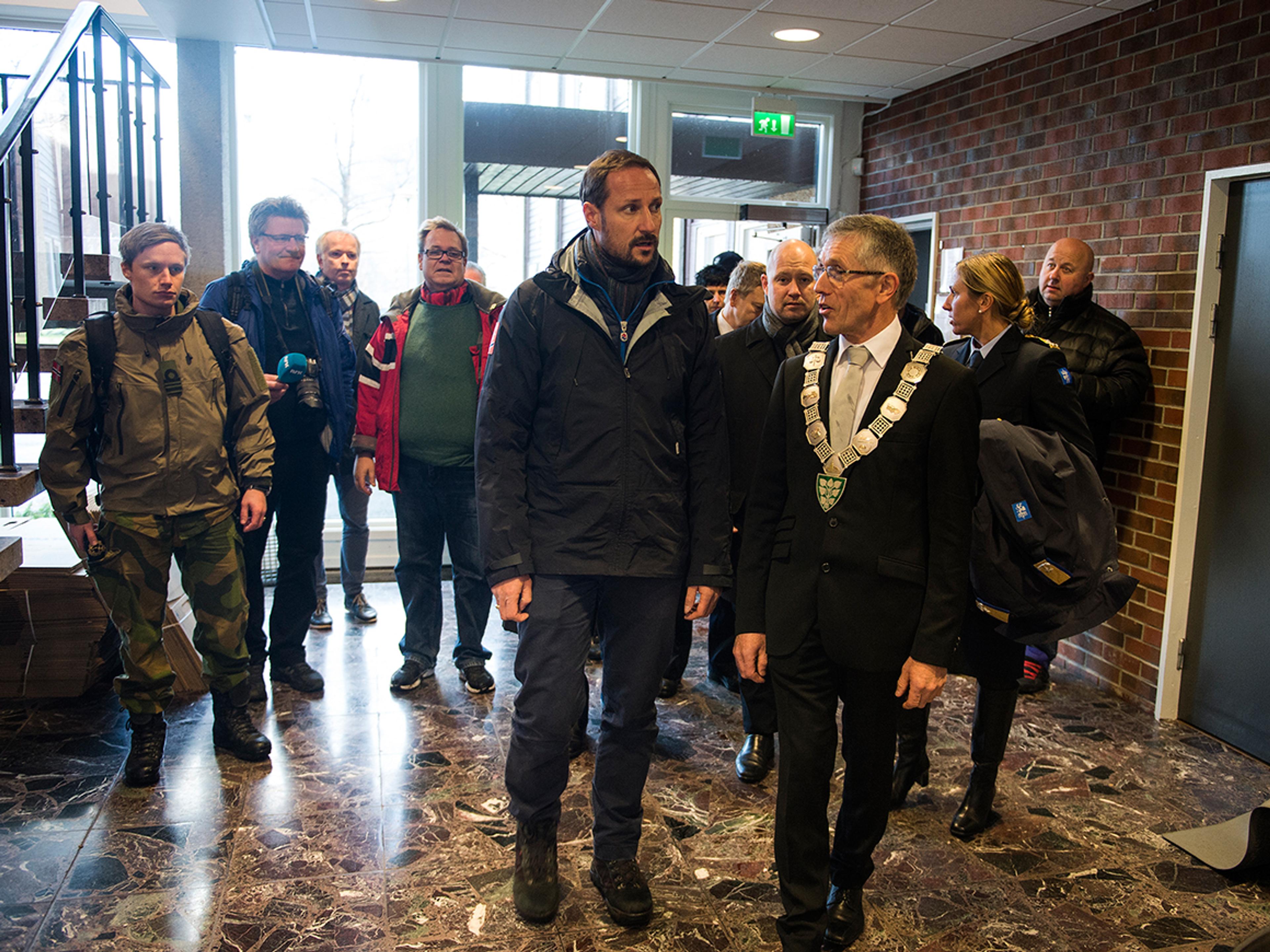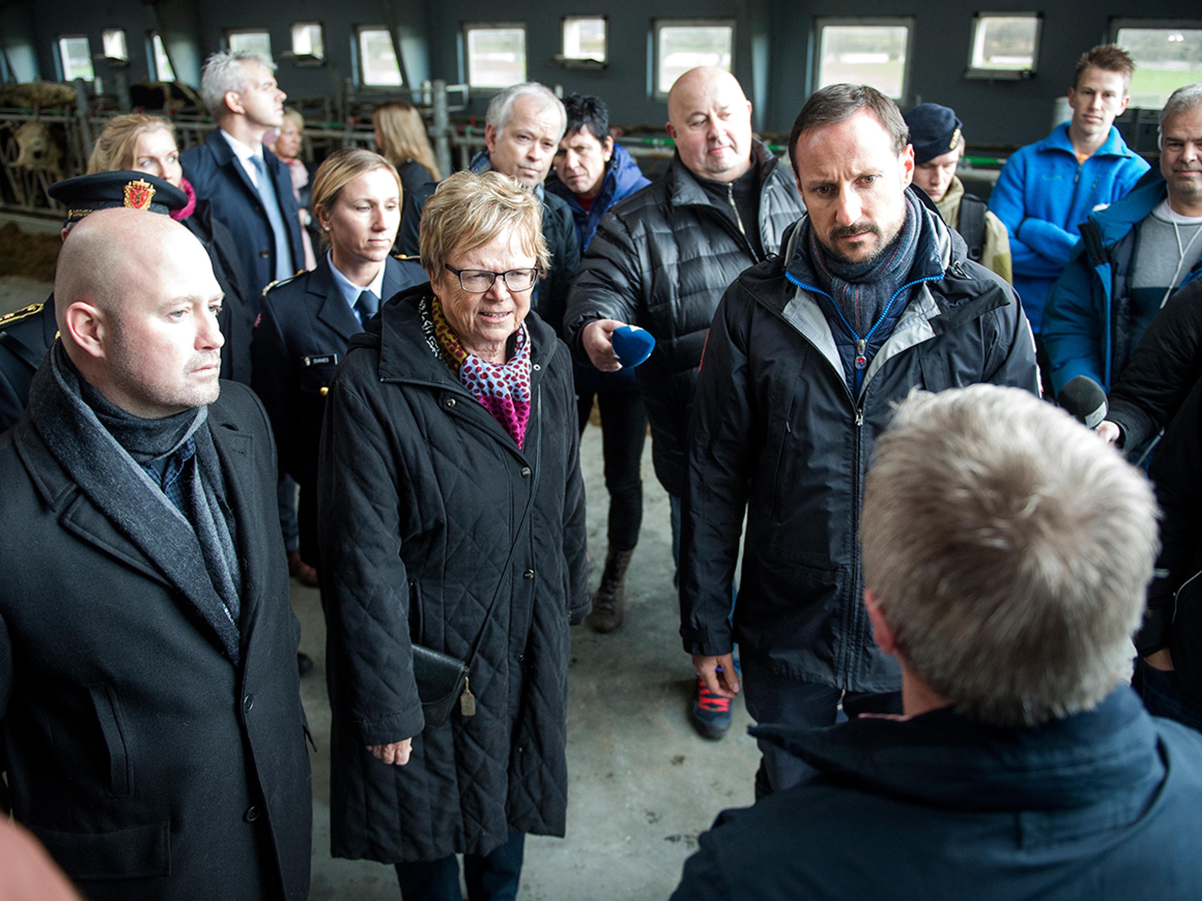 – Eit lite lyspunkt under flaumen er at lokalsamfunnet har stilt opp, og beredskapsarbeidet har fungert bra her i området, sa Kronprinsen