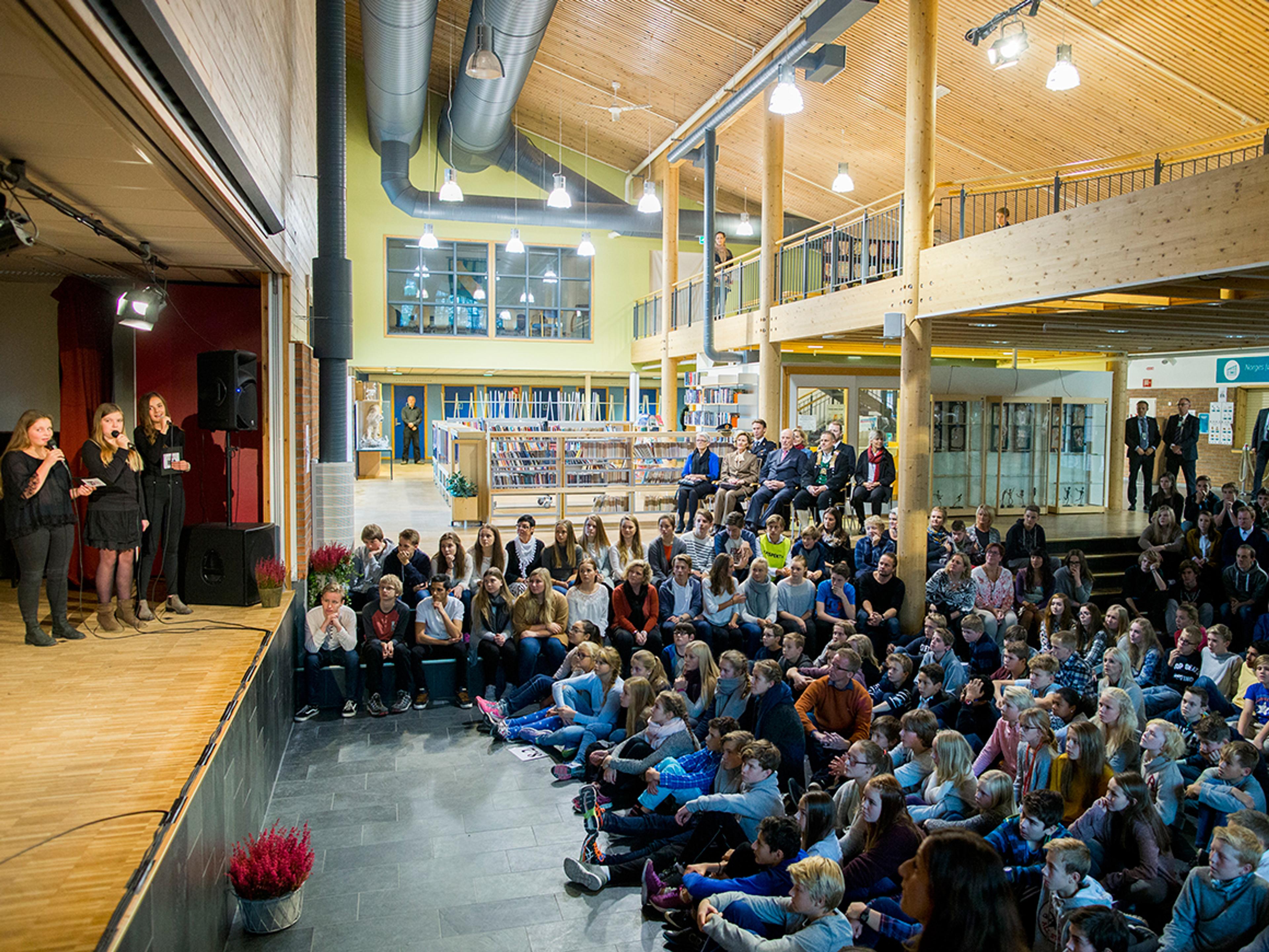 Etter besøket til ankomstsenteret, dro Kongeparet videre til Råde ungdomsskole. Her fikk Kongen og Dronningen høre om IFA-dagen og snakke med elever som skal delta.