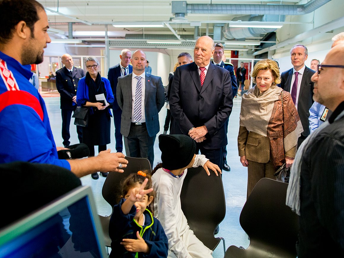 I dag besøkte Kongeparet det nye ankomstsenteret for flyktninger som er etablert i Råde i Østfold. – Vi må gjøre det vi kan for å hjelpe dem, sa Hans Majestet Kongen.