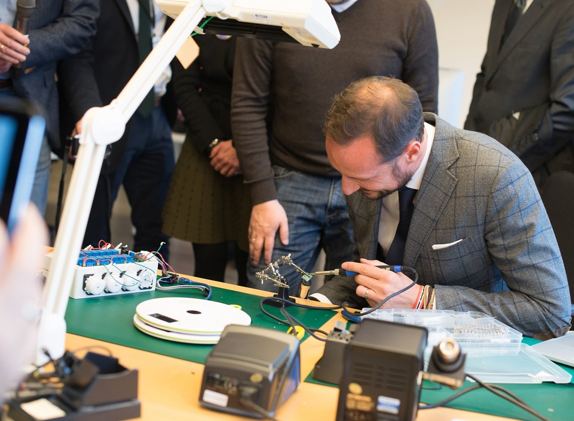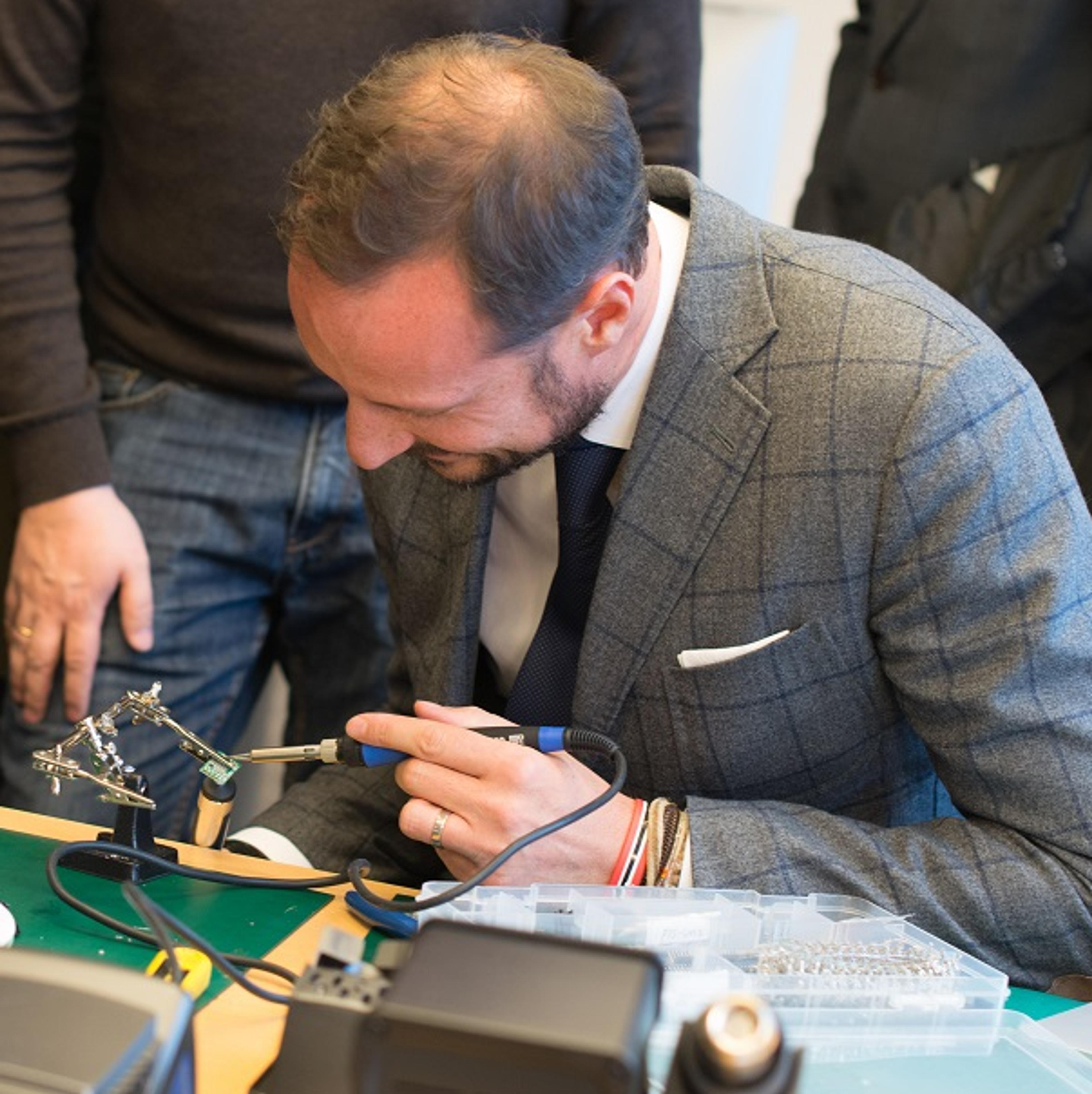 Kronprinsen innleidde besøket sitt på Forus utanfor oljehovudstaden. Sidan oppstarten i fjor har Creator Makerspace tilbode ein felles arbeids- og møteplass for gründerar for å kople innovasjonsmiljøet nærare til industrien.
