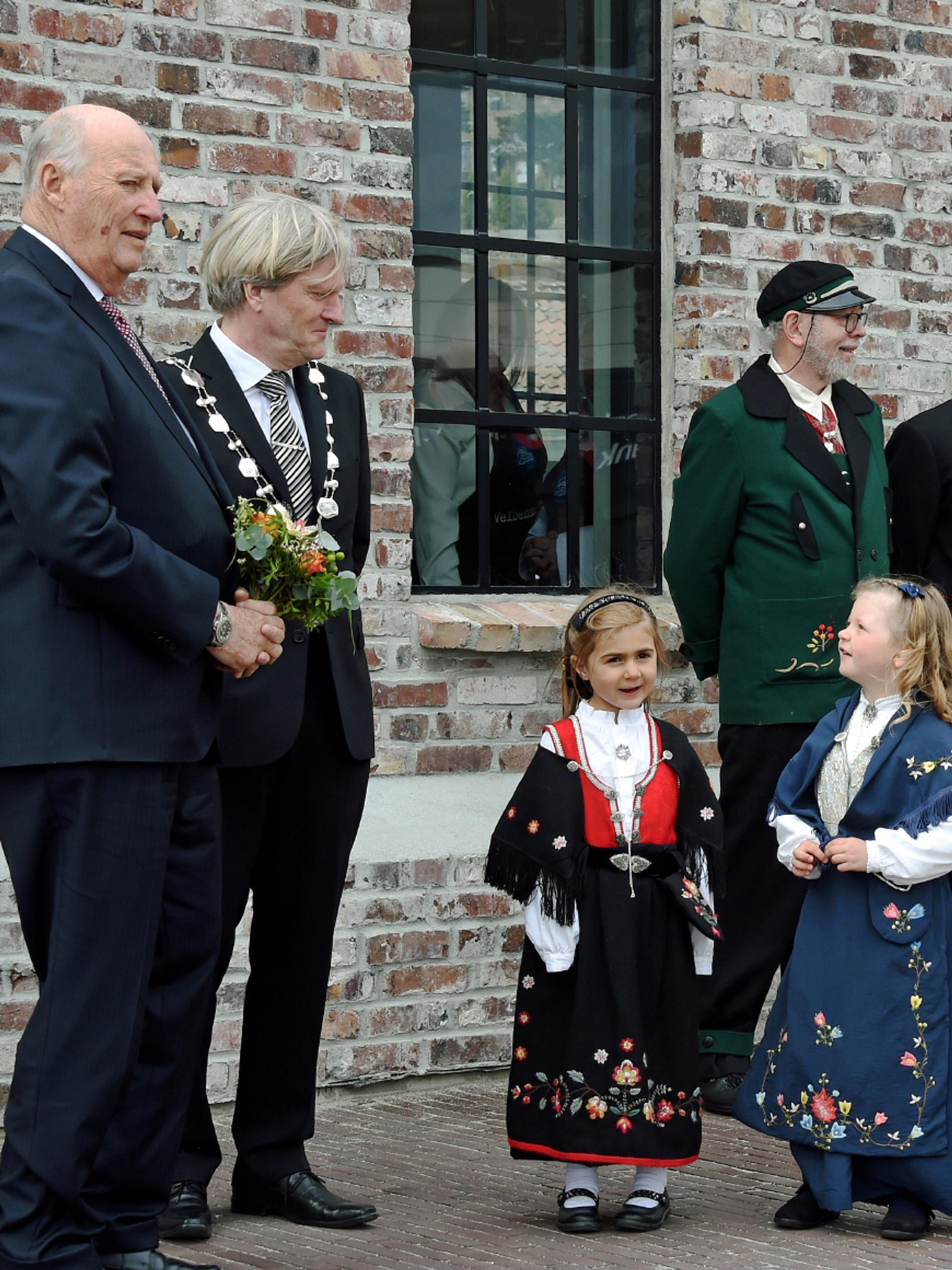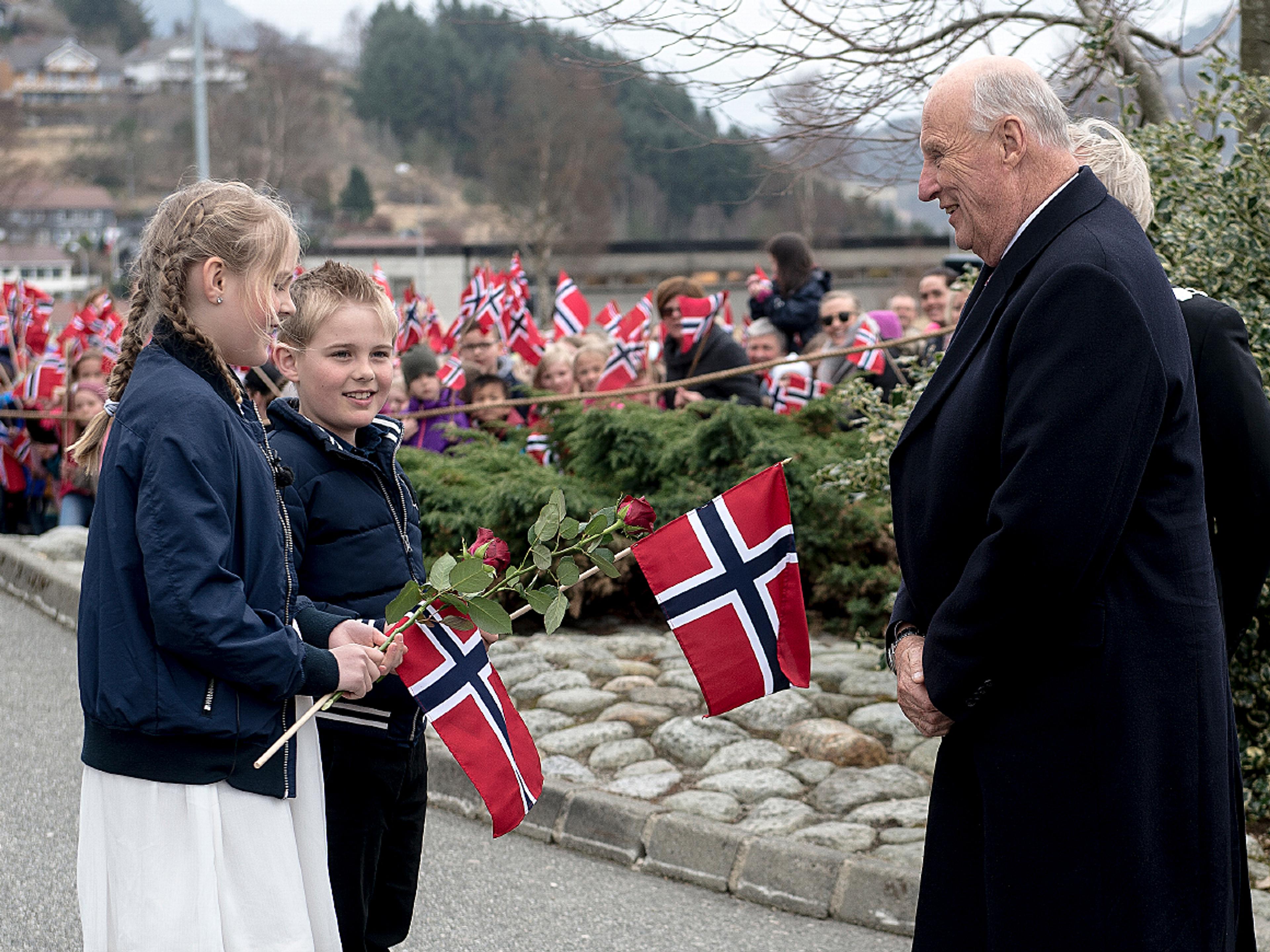 Fremst i koret sto søsknene Lise (5. klasse) og Tobias Vølstad (2. klasse). De hadde skrevet brev til Kong Harald for å invitere han til Gjesdal. Da barna hadde sunget ferdig, ble Kongen ønsket velkommen av ordfører Frode Fjeldsbø og rektor Trond Niemi på Gjesdal ungdomskole.