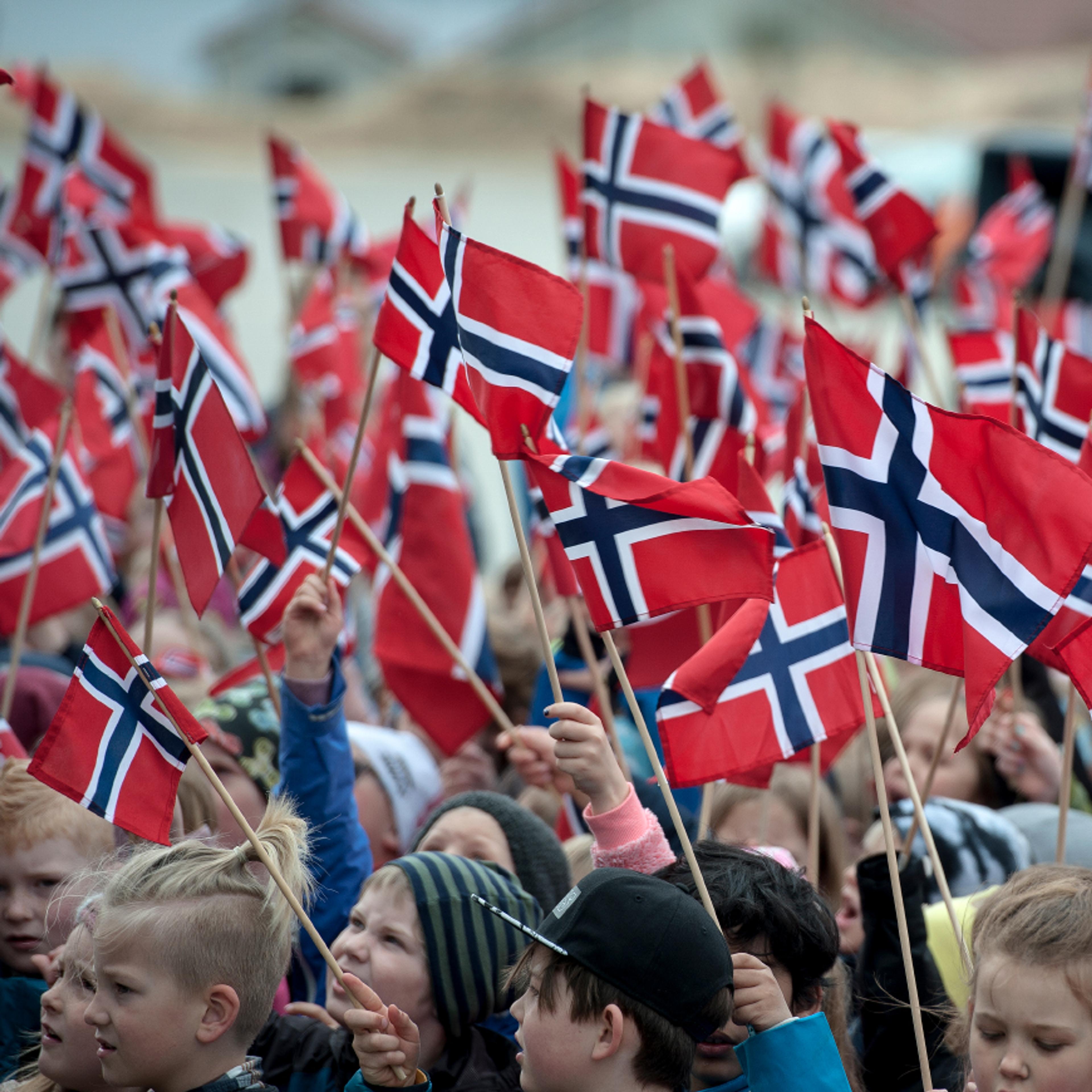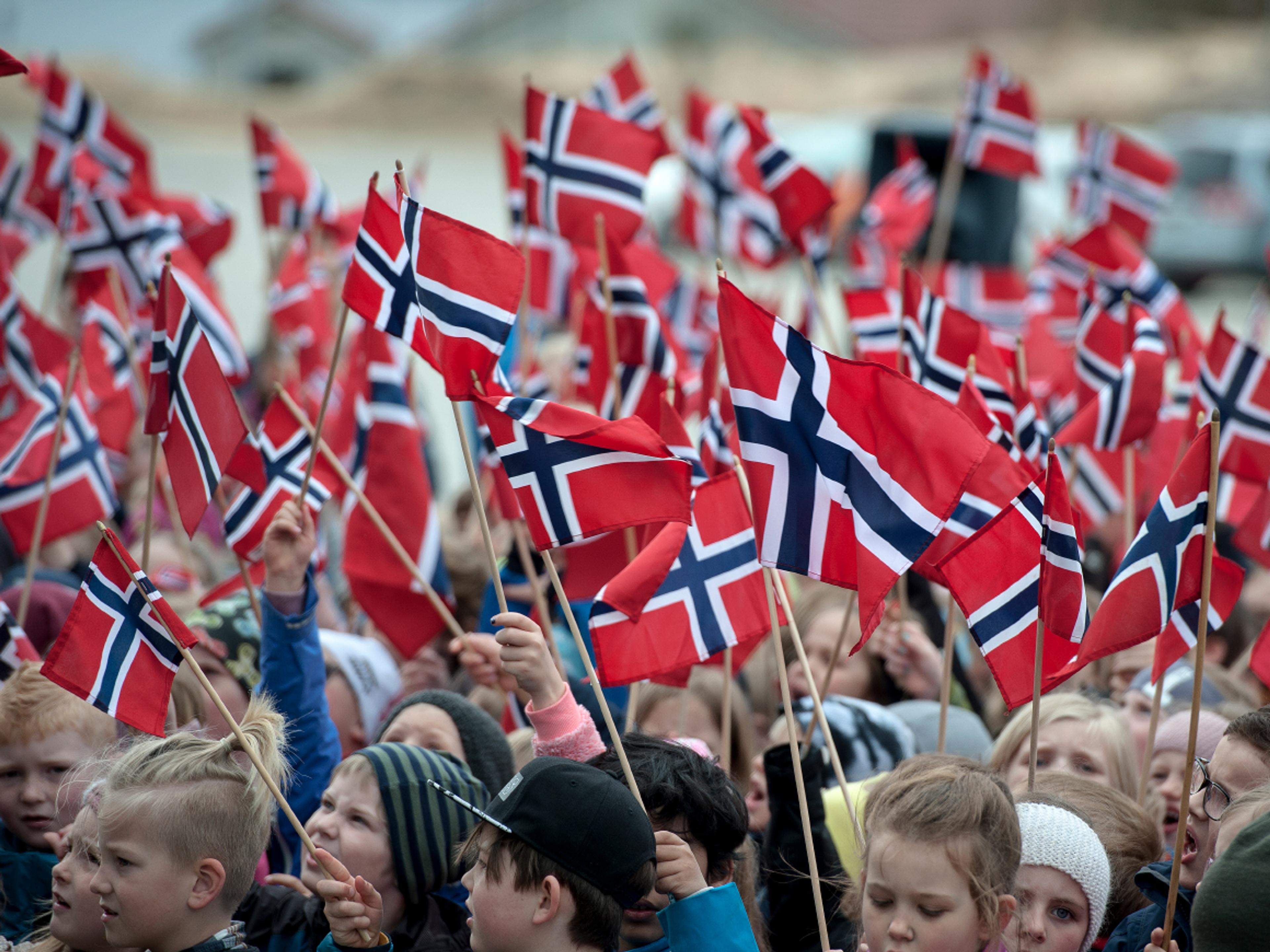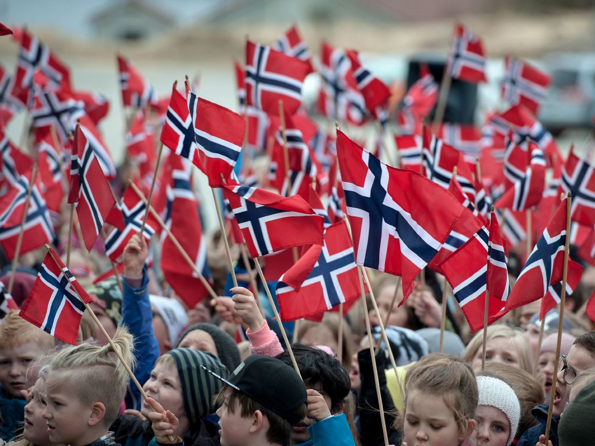 Norske flagg møtte Hans Majestet Kongen da han kom til Gjesdal ungdomsskole i Ålgård i formiddag. Da Kongen steg ut av bilen, stemte barn fra Solås skole i med allsang.