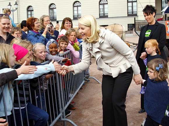 DD.KK.HH. Kronprinsesse Mette-Marit og Prinsesse Ingrid Alexandra møtte mer enn tusen miljøagenter på Slottsplassen fredag for å markere Verdens miljødag.