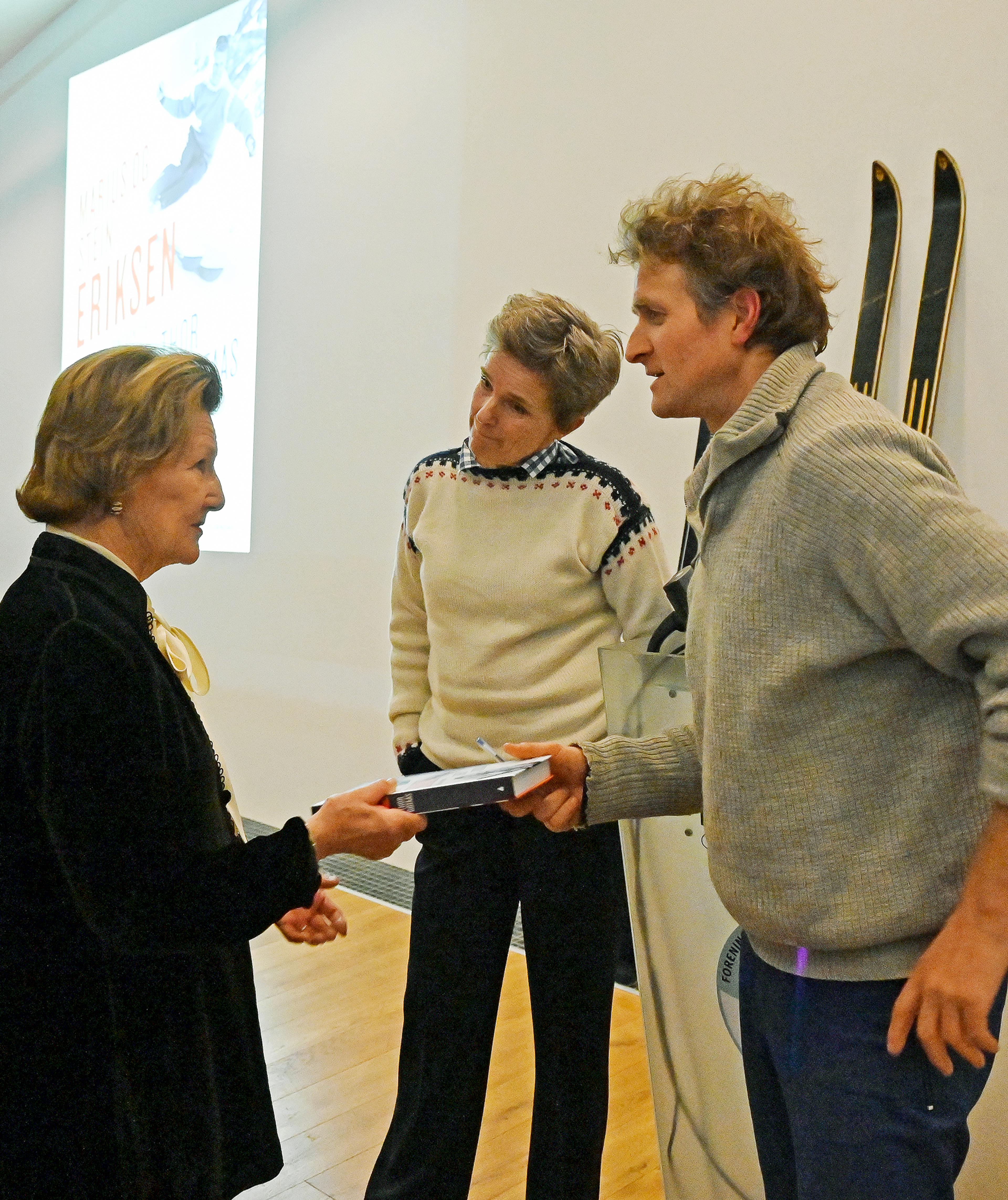 Hennes Majestet Dronningen var til stede ved skihistorisk kveld på Skimuseet i Oslo torsdag kveld. Forfatter Thor Gotaas holdt foredrag om brødrene Marius og Stein Eriksen, og deres betydning for norsk ski og alpinsport.