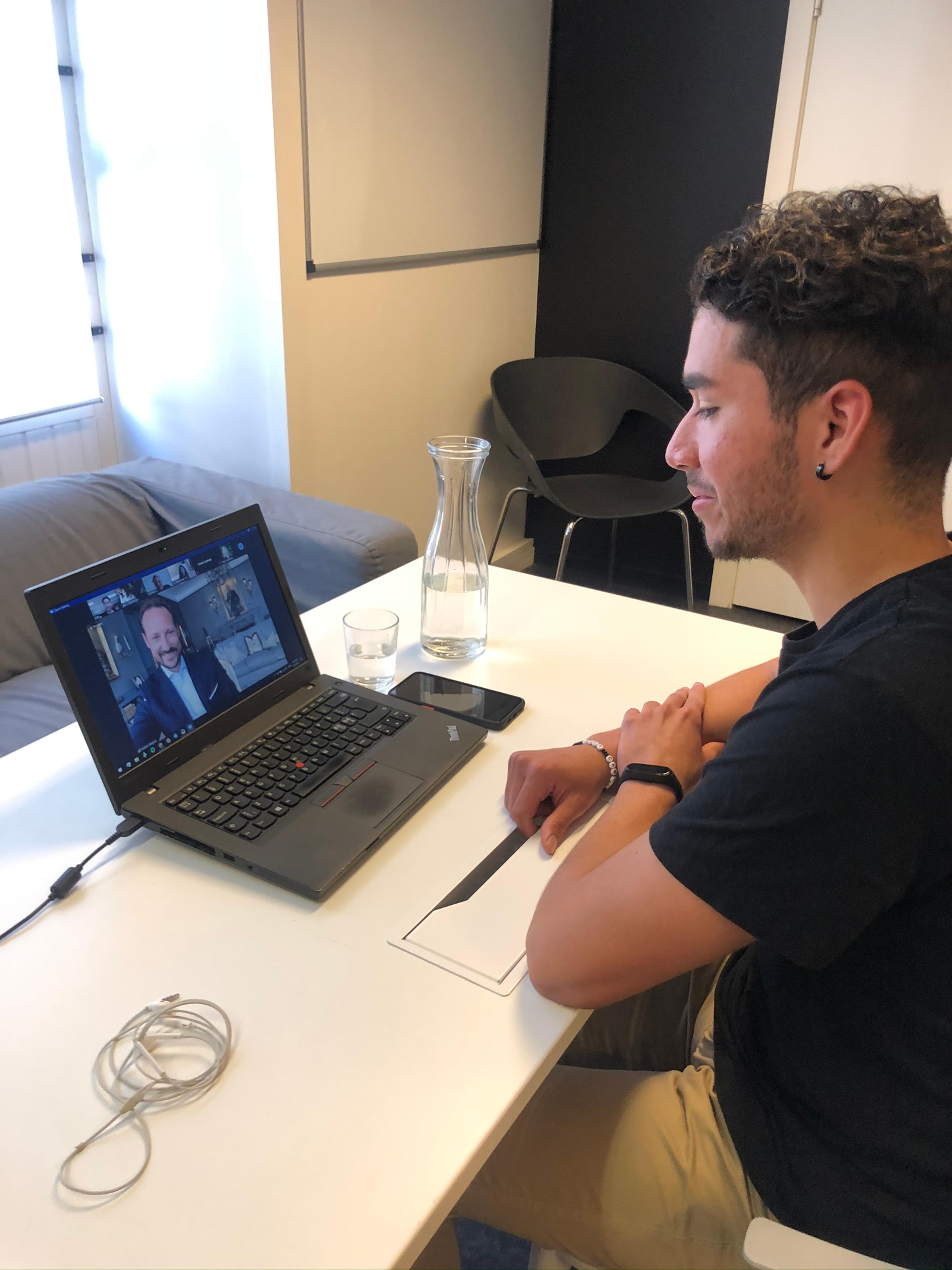 Det var fire spente og positive ungdommer som møtte Kronprinsen fra hver sin dataskjerm. Ungdommene er med i forskjellige typer prosjekter som jobber for ungdom, og kunne dele erfaringer med hverandre og Kronprinsen. Ungdommene representerte hvert sitt prosjekt som mottar støtte gjennom Kronprinsparets fond.