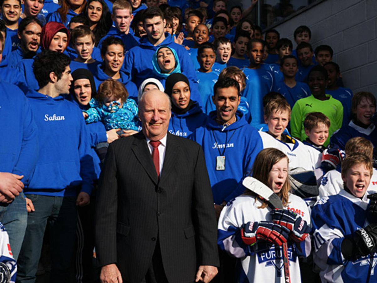 Idrett, frivillighet, forebyggende arbeid og mestring sto i fokus da Hans Majestet Kong Harald besøkte Furuset Idrettsforening og Alnaskolen i ettermiddag.