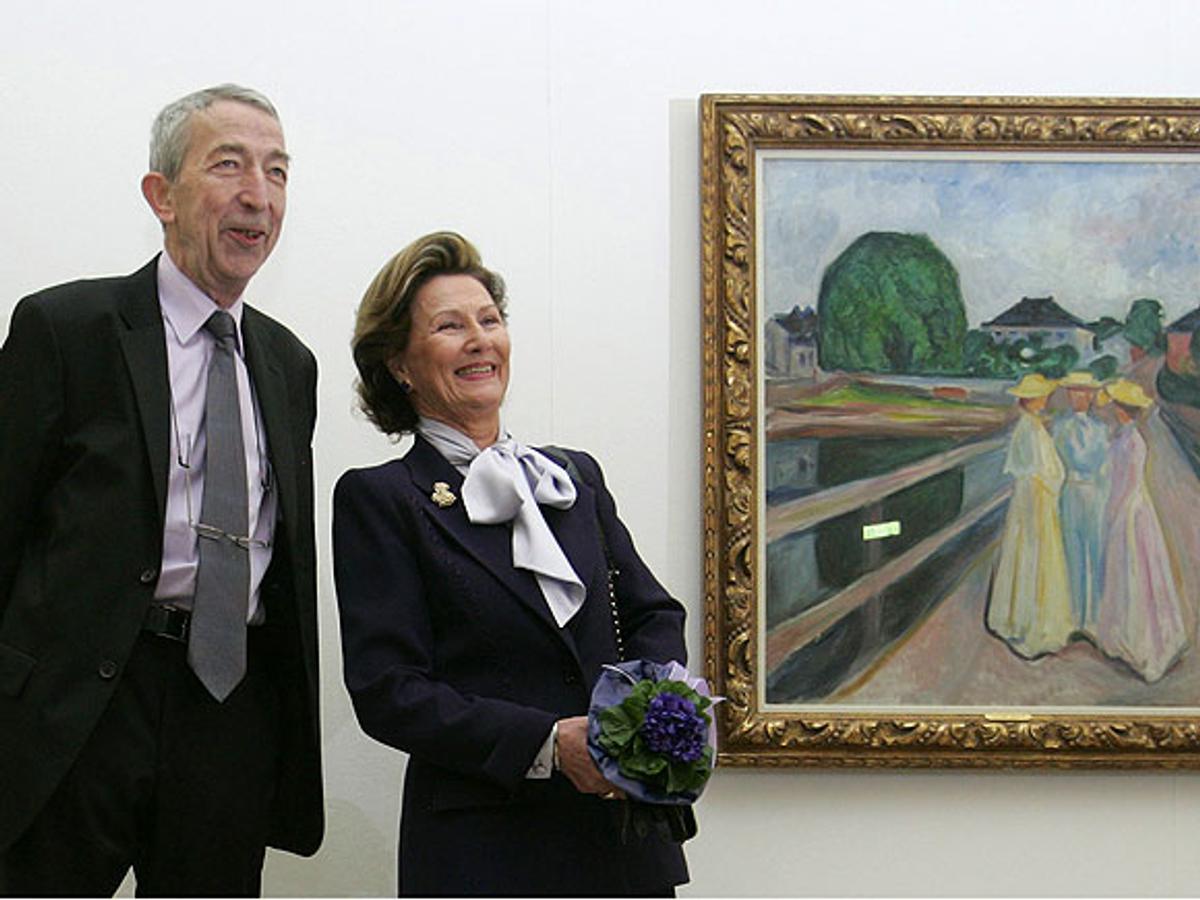 H.M. Dronningen var til stede ved åpningen av utstillingen Edvard Munch – Zeichen der Moderne på museet Fondation Beyeler i Riehen ved Basel i Sveits 17. mars 2007. H.M. Dronningen er utstillingens høye beskytter.