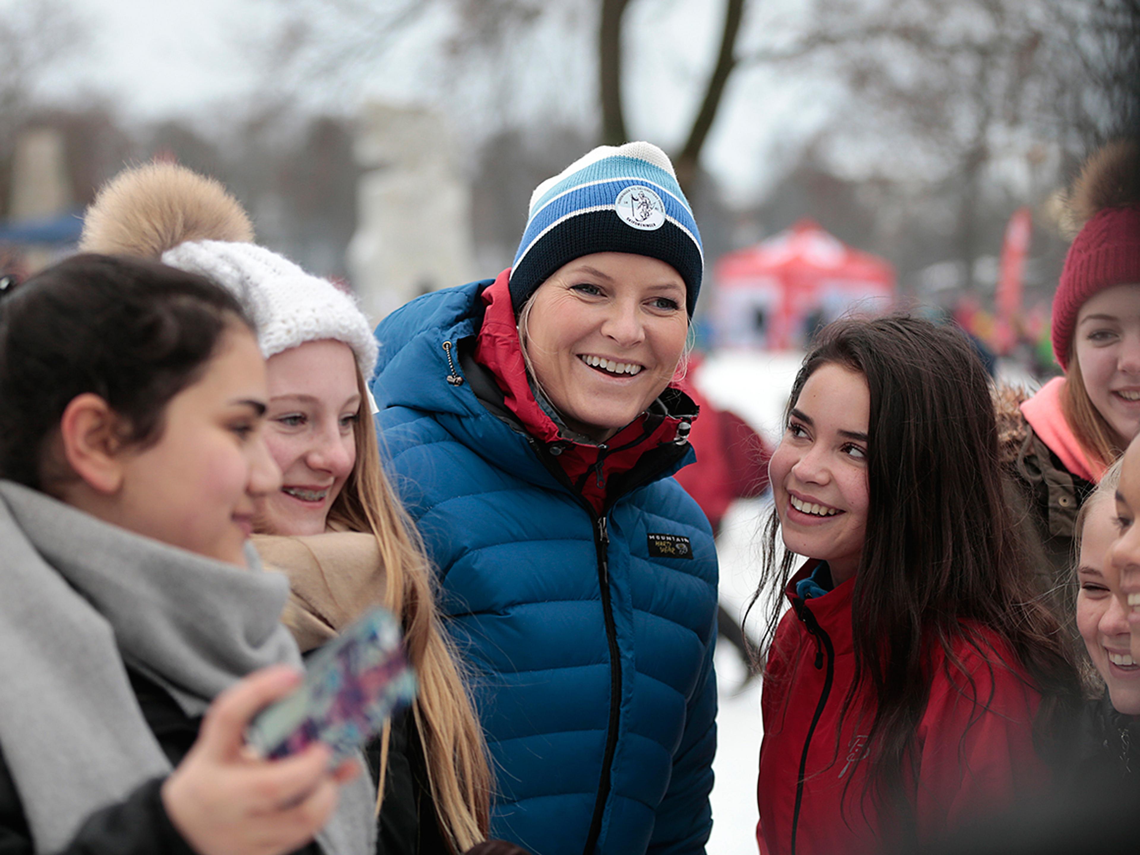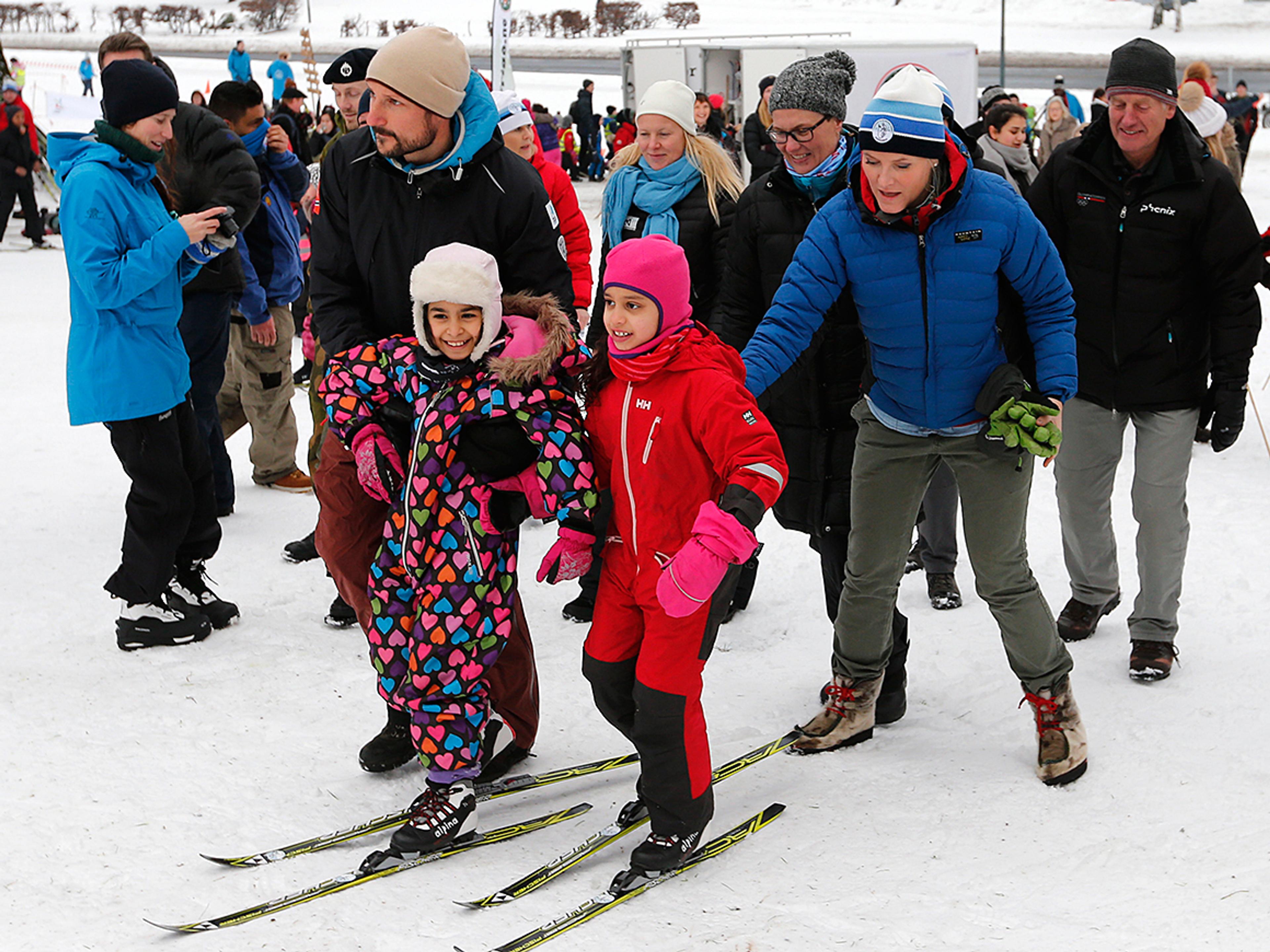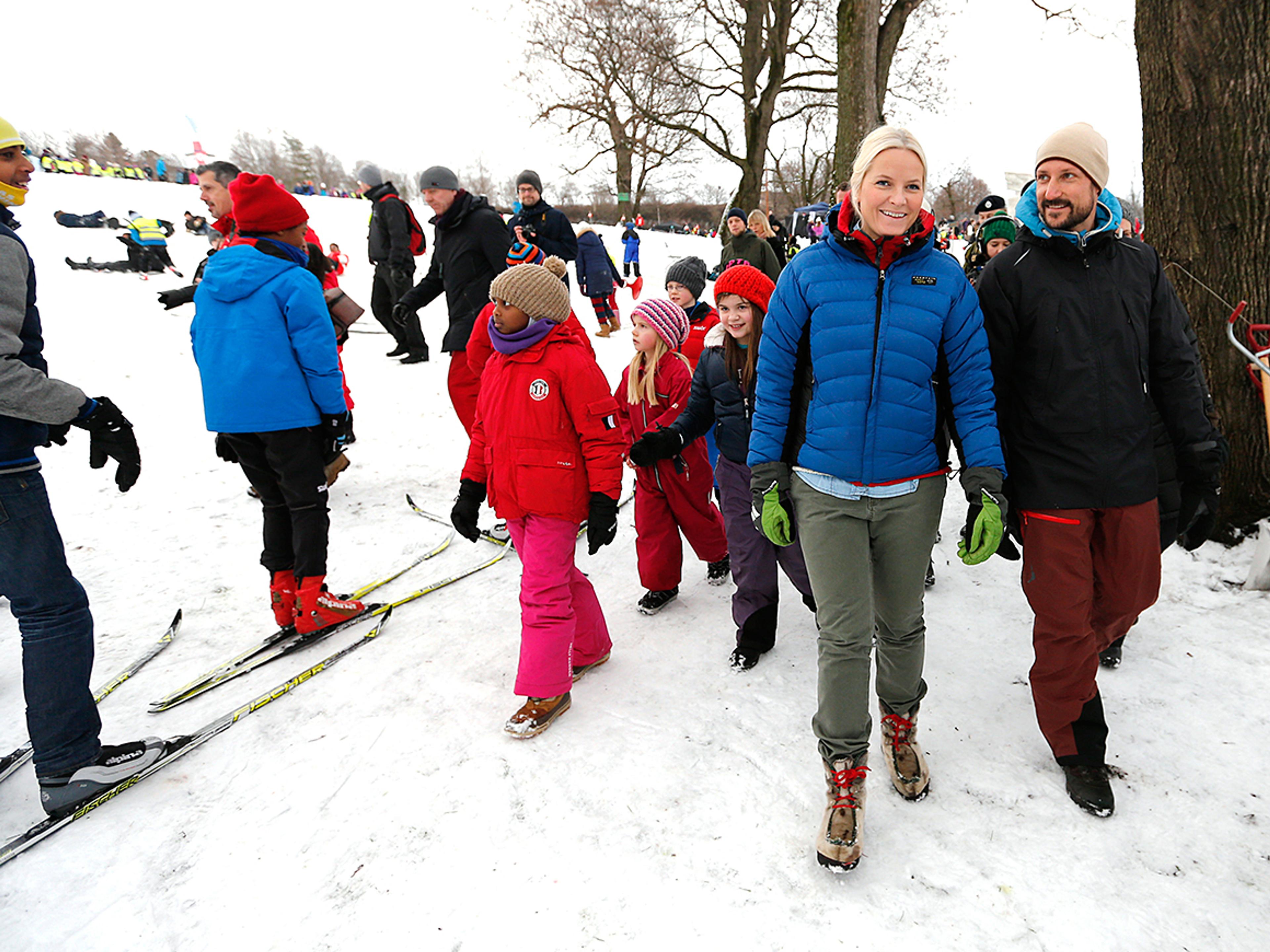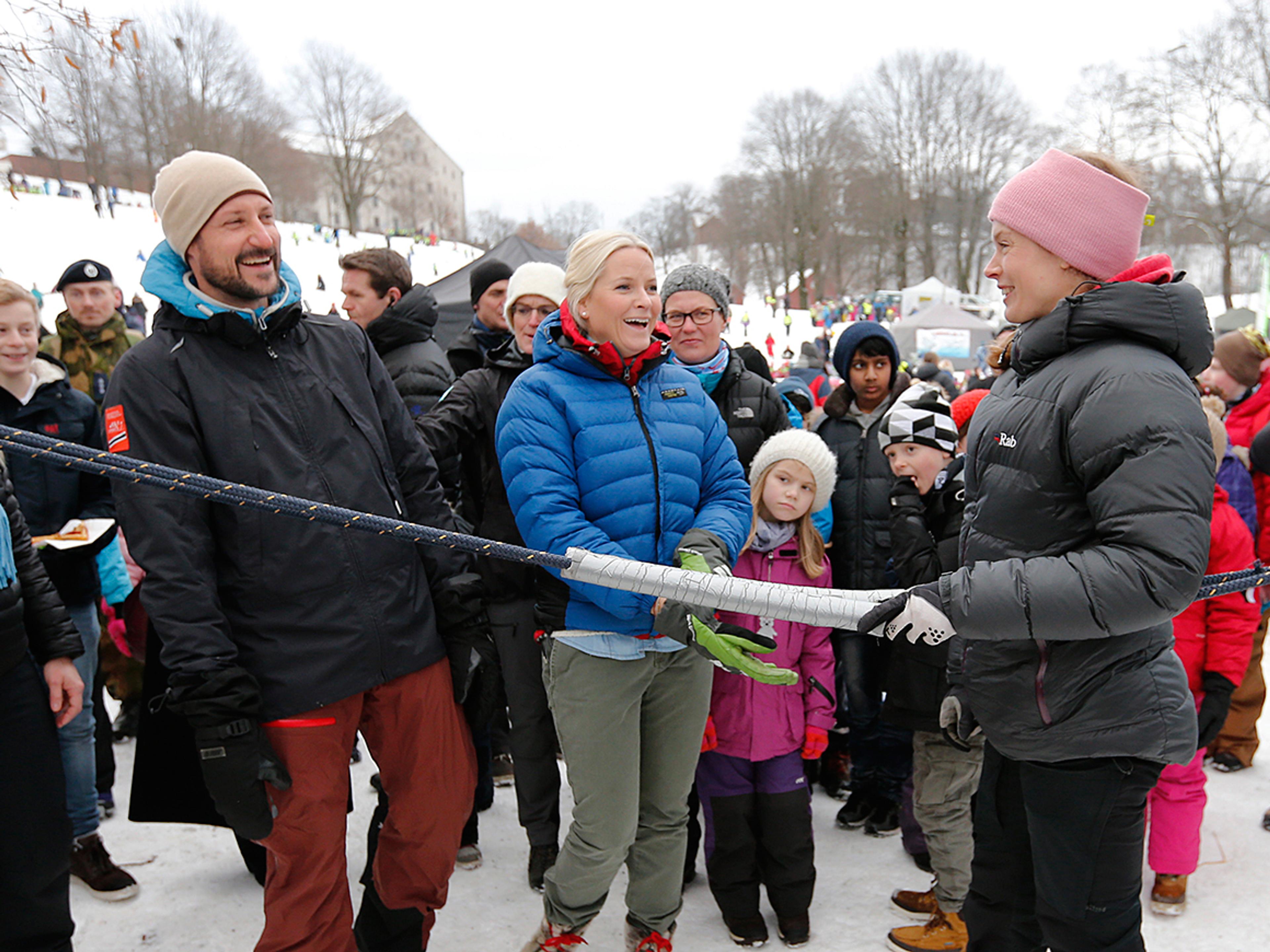 I Tøyenparken fikk Kronprins Haakon og Kronprinsesse Mette-Marit delta på skilek i regi av Skiforeningen, som utfordret både barn og voksne på balanse, koordinasjon og lekenhet.
