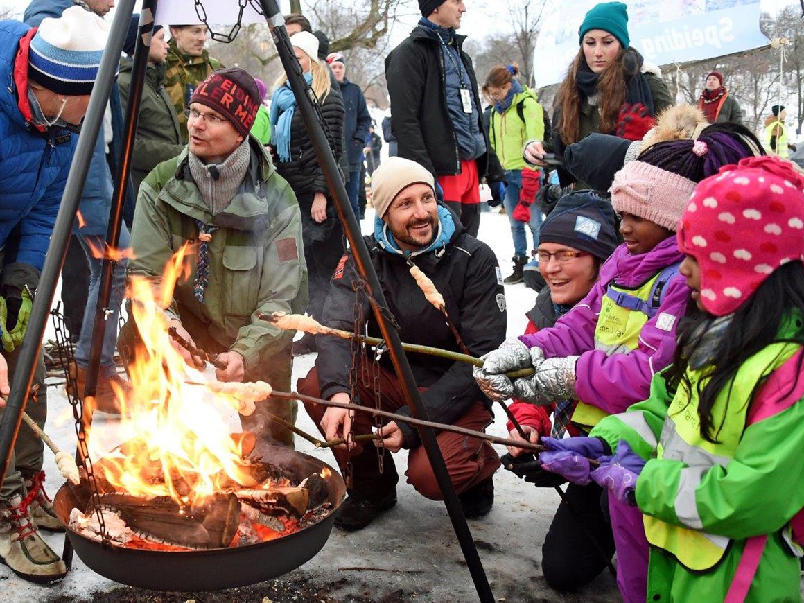 - Det beste med det å være ute og drive med friluftsliv, det er at det er så lett! Det er bare å ta på seg noen klær - noen ski eller noen sko og så gå ut og være i naturen. Og i Norge så er vi ganske heldige, for vi har jo natur overalt. sa Kronprins Haakon i Tøyenparken.