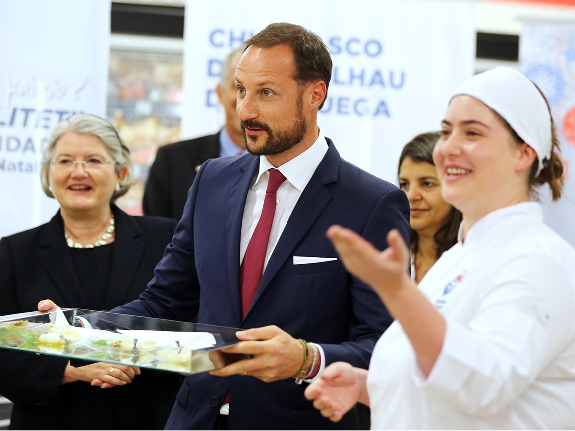 Vinneren av Brasils MasterChef, Izabel Alvarez, sto for matlagingen på dagens arrangement, der Kronprins Haakon både fikk smake grillet torsk og dele ut smaksprøver til publikum og presse.