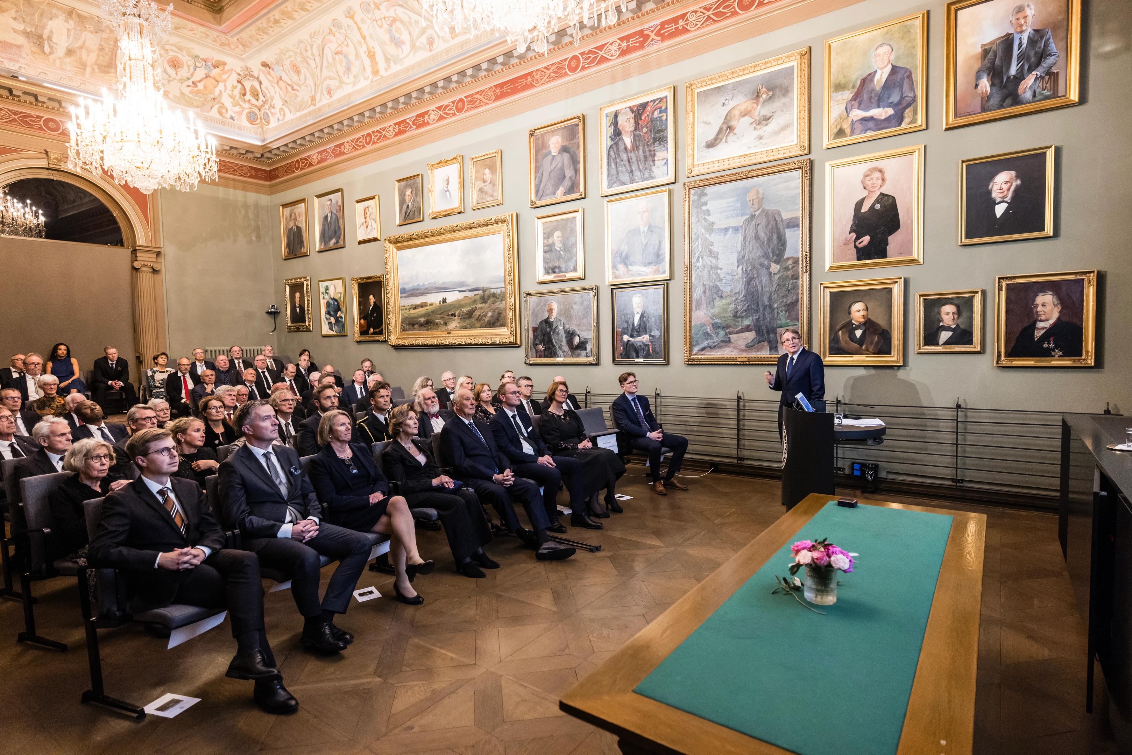 Hans Majestet Kongen og Hennes Majestet Dronningen var til stede da Geir Winge Gabrielsen holdt årets minneforelesning, til minne om polfareren Fridtjof Nansen.