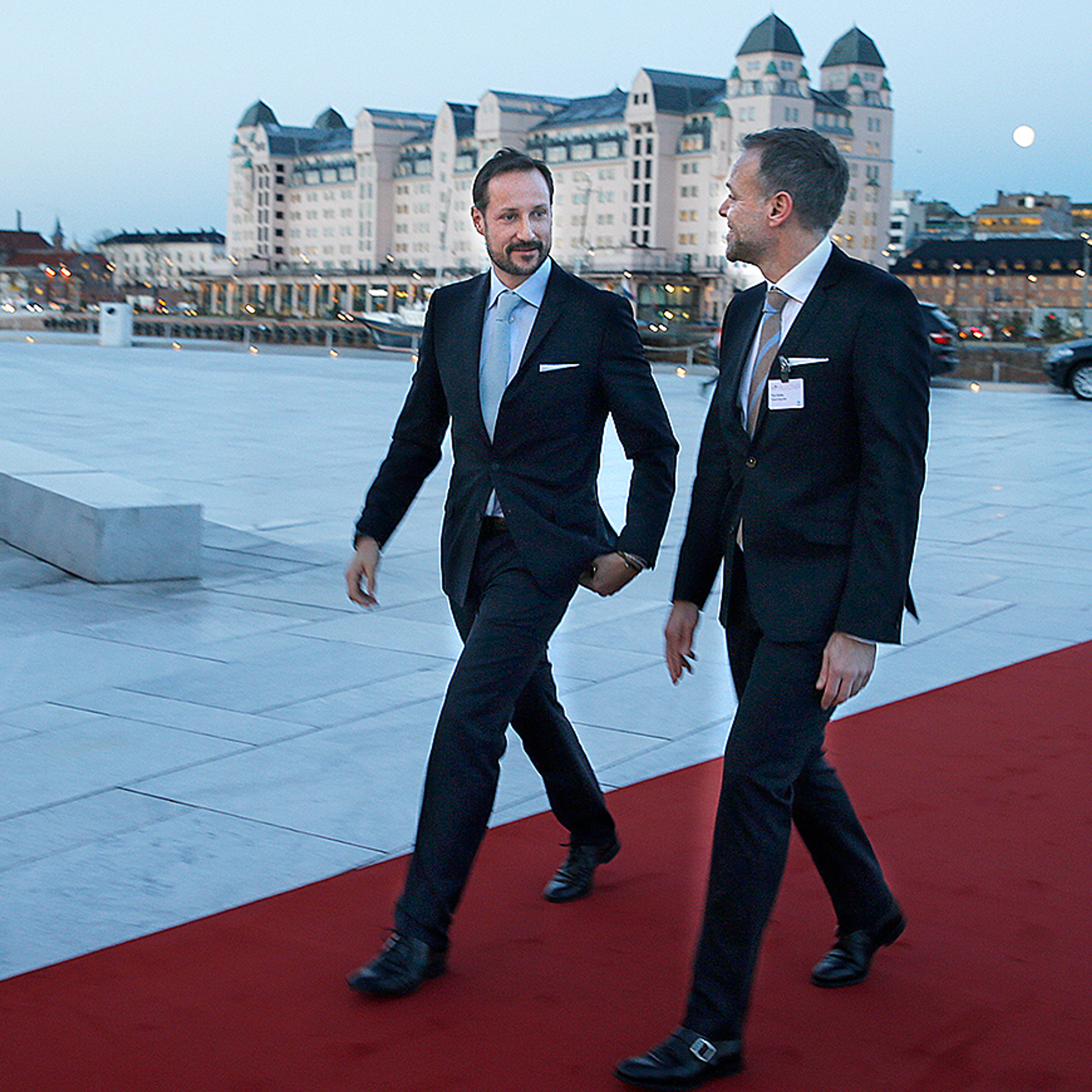 I kveld vil både Kronprinsen og Kronprinsessen være til stede ved NHOs årsmiddag i Oslo Rådhus.
