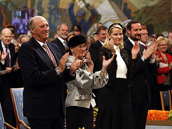 Både Kongeparet og Kronprinsparet var til stede da Fredsprisen ble overrakt i Oslo Rådhus i dag. I formiddag mottok Hans Majestet Kongen Nobelprisvinnerne i audiens på Slottet.