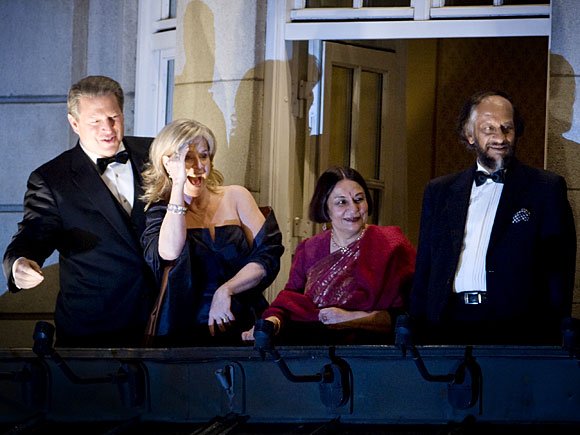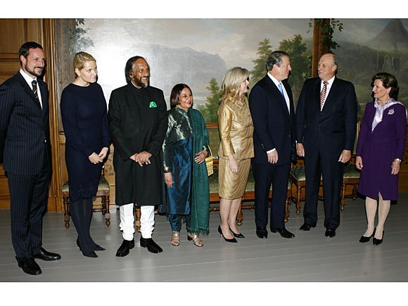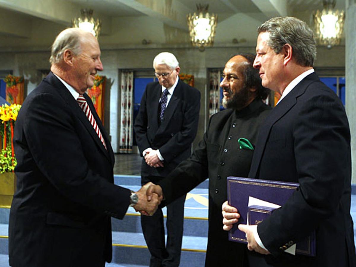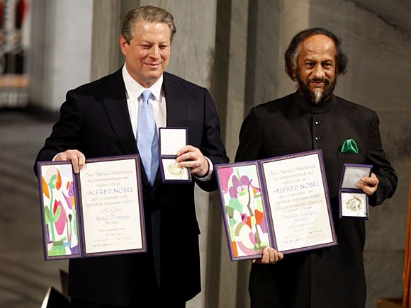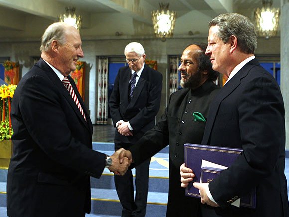 Tidligere Visepresident Al Gore og lederen av FNs klimapanel, Rajendra Pachauri, mottok i dag Nobels fredspris under en seremoni i Oslo Rådhus. De mottar prisen for sin innsats for å skape og spre kunnskap om menneskeskapte klimaendringer, og for å legge grunnlag for nødvendige tiltak for å motvirke disse endringene.