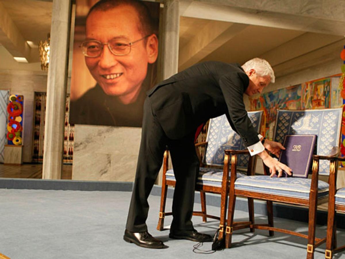 Prisvinneren sitter i fengsel i Kina, og kunne derfor ikke være til stede for å motta prisen. Det var heller ingen til stede for å motta prisen på Liu Xiaobos vegne. Prisvinneren var derfor representert med en tom stol på podiet under seremonien.