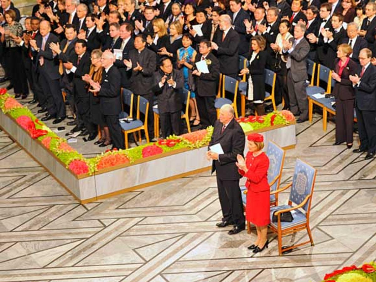 Deres Majesteter Kongen og Dronningen var til stede under seremonien som markerte tildelingen av Nobels fredspris til den kinesiske menneskerettsforkjemperen Liu Xiaobo i dag.