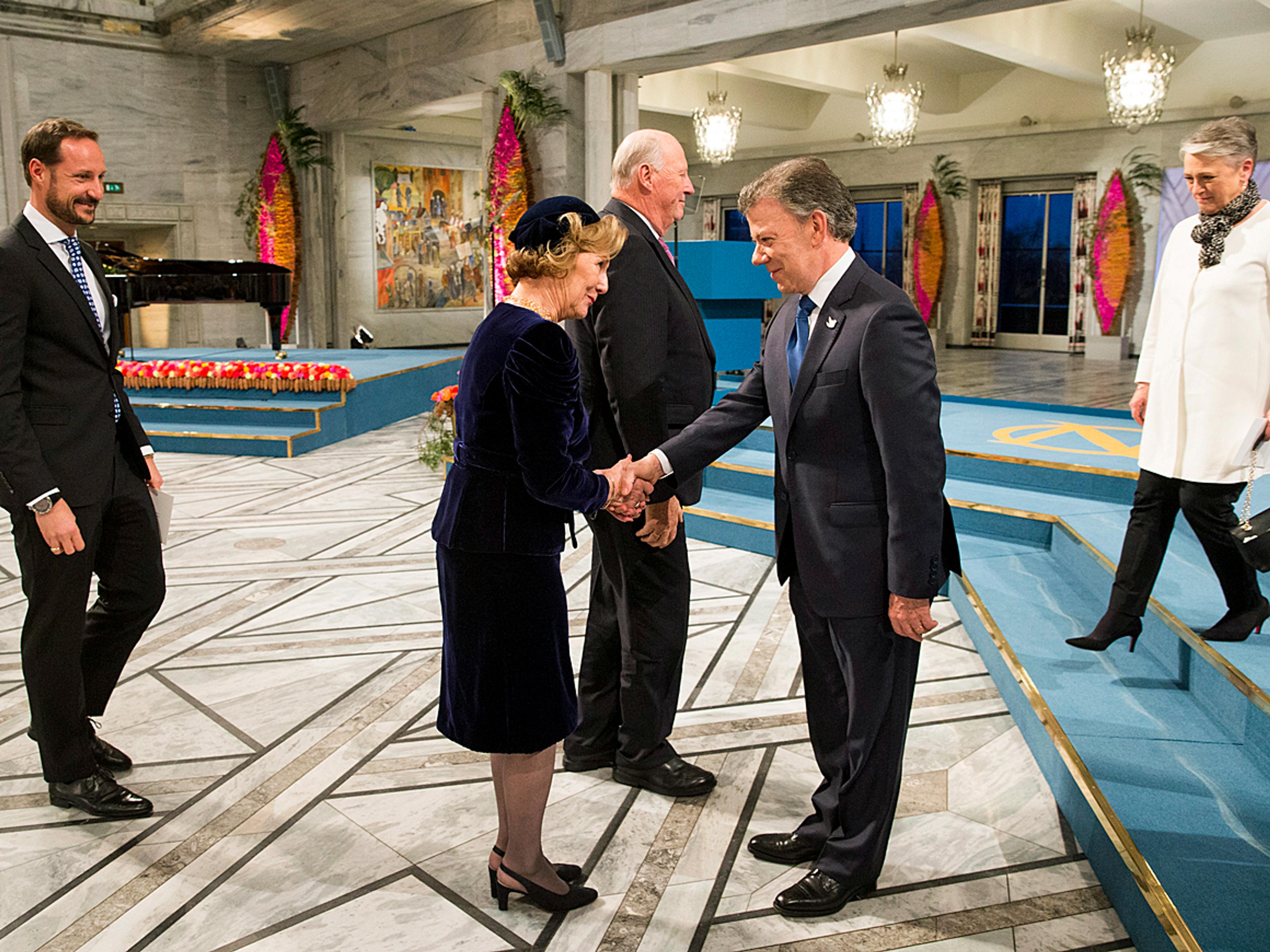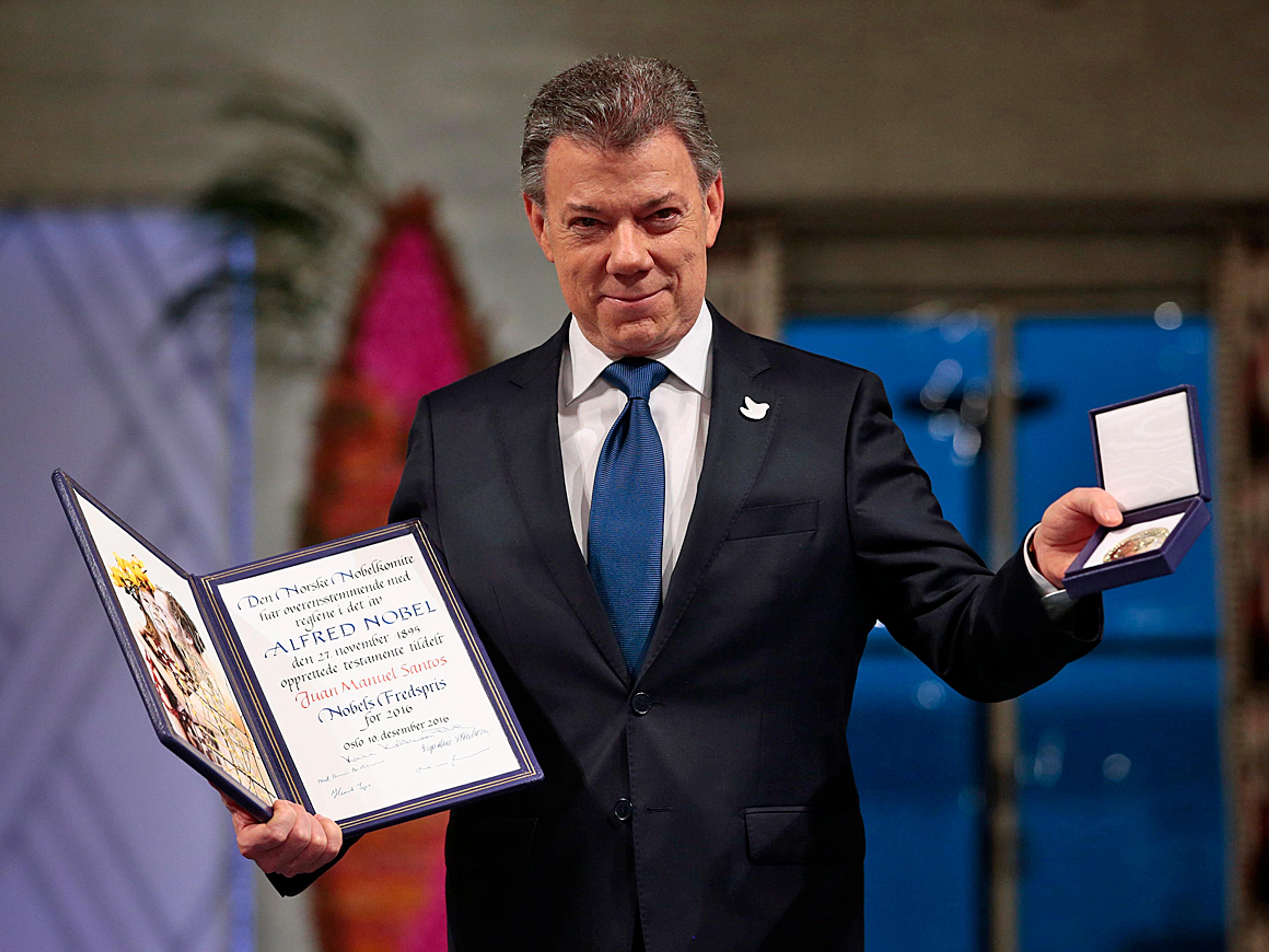 I oktober annonserte Den Norske Nobelkomité at Nobels fredspris 2016 skulle tildeles Colombias president Juan Manuel Santos. Santos mottar prisen for sin «innsats for å bringe den mer enn 50 år lange borgerkrigen i landet til opphør, en krig som har kostet minst 220 000 colombianere livet og drevet nær seks millioner innbyggere på flukt. Tildelingen skal også forstås som en hyllest til det colombianske folk som til tross for store prøvelser og overgrep ikke har gitt opp håpet om en rettferdig fred, og til alle parter som har bidratt til fredsprosessen. Denne hyllesten tilkommer ikke minst representantene for borgerkrigens utallige ofre.»