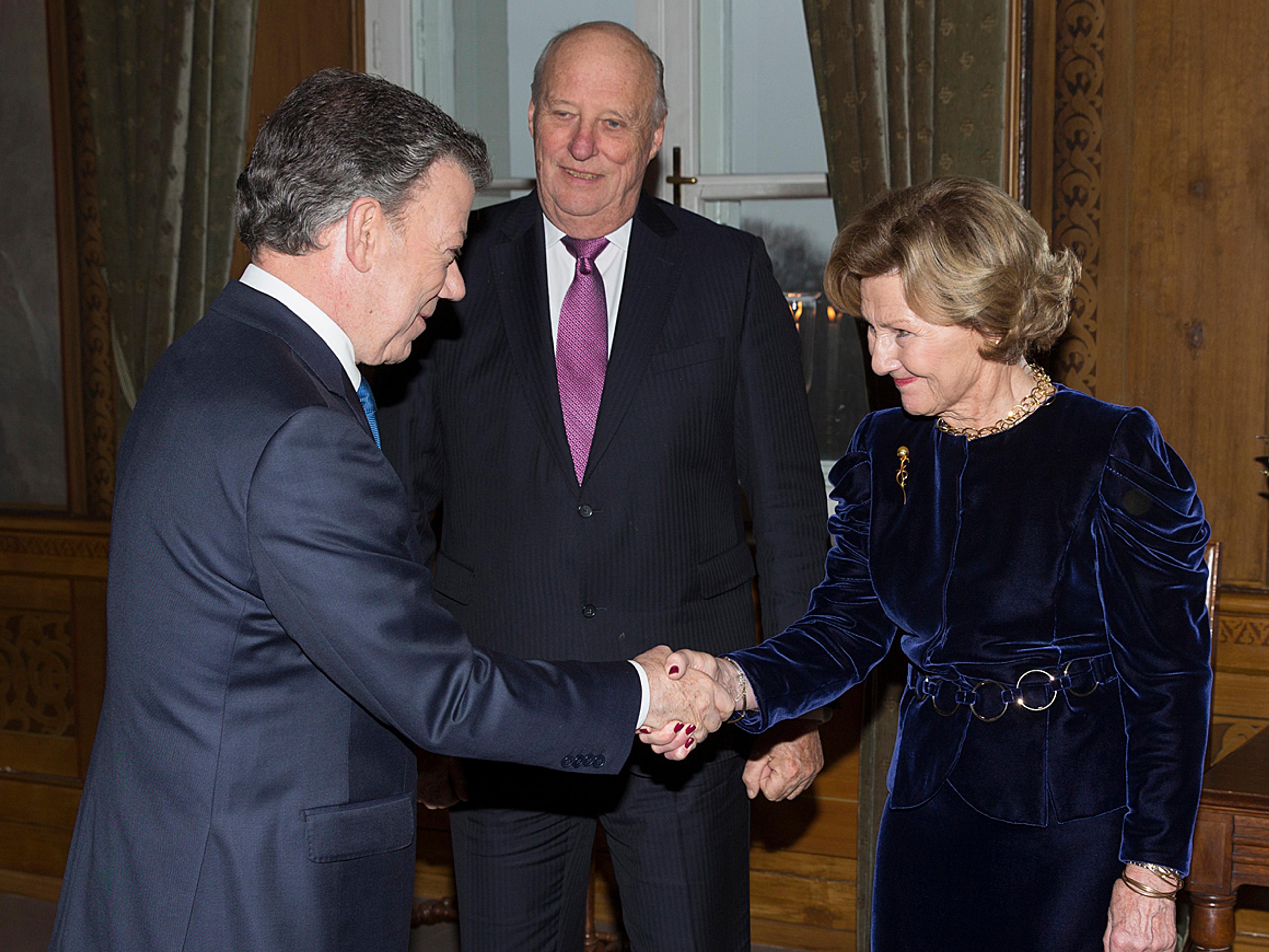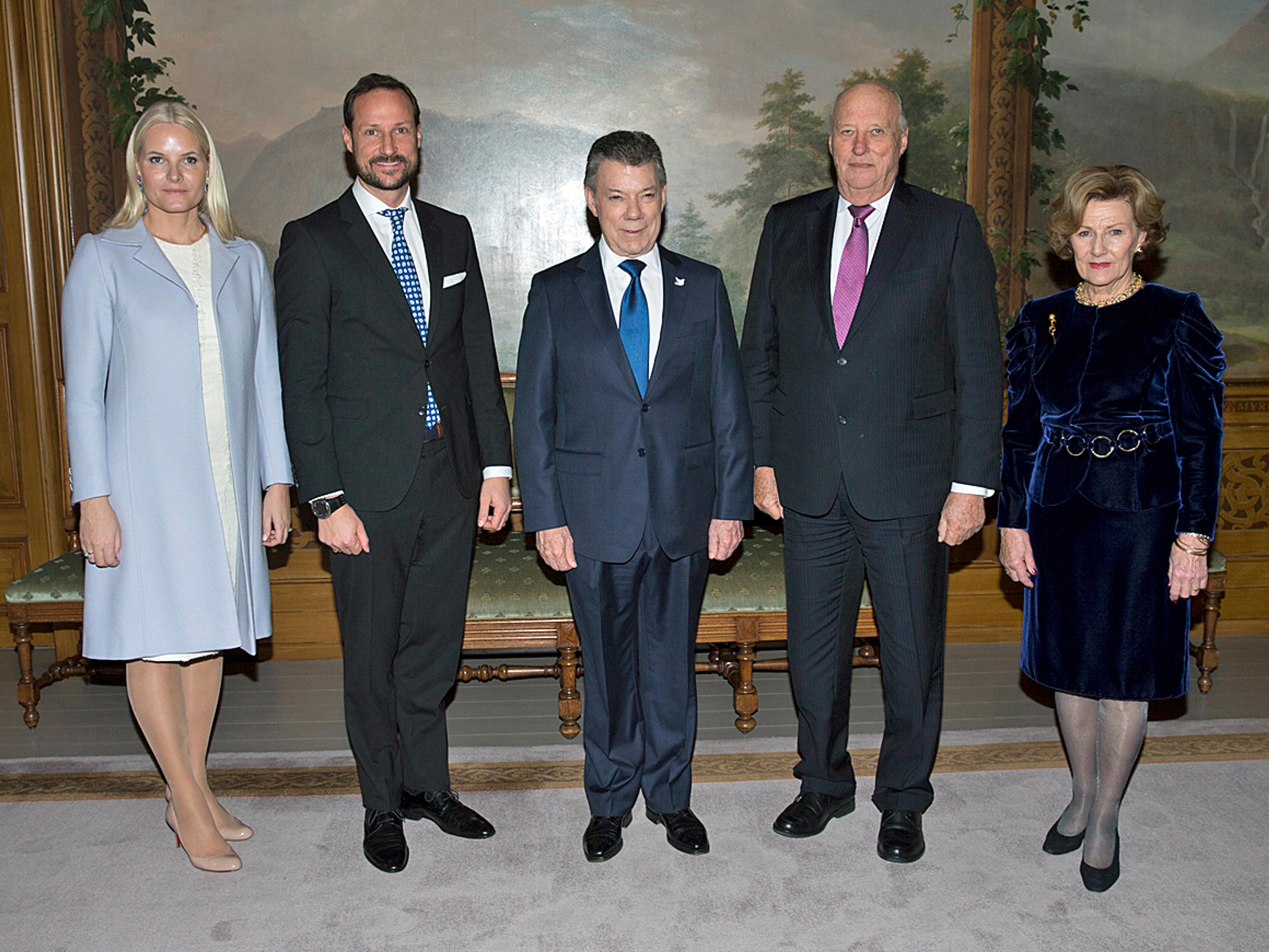 I dag var både Kongeparet og Kronprinsparet til stede under den høytidelige seremonien i Oslo Rådhus der H.E. President Juan Manuel Santos mottok Nobels fredspris for 2016.