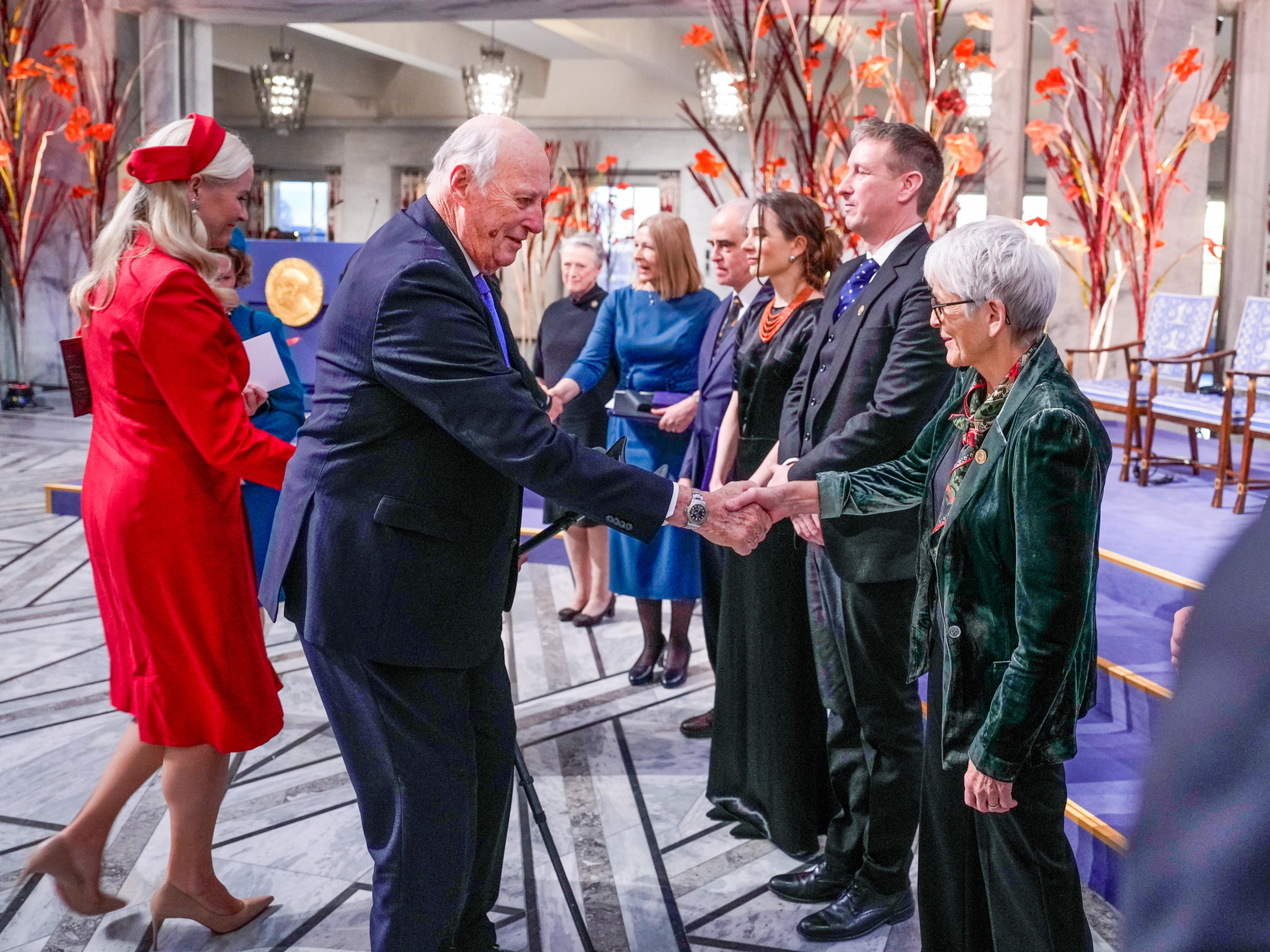 Før utdelingen tok Hans Majestet Kong Harald imot representantene for fredsprisvinnerne i audiens på Det kongelige slott. Hennes Majestet Dronning Sonja og Deres Kongelige Høyheter Kronprins Haakon og Kronprinsesse Mette-Marit var også til stede.