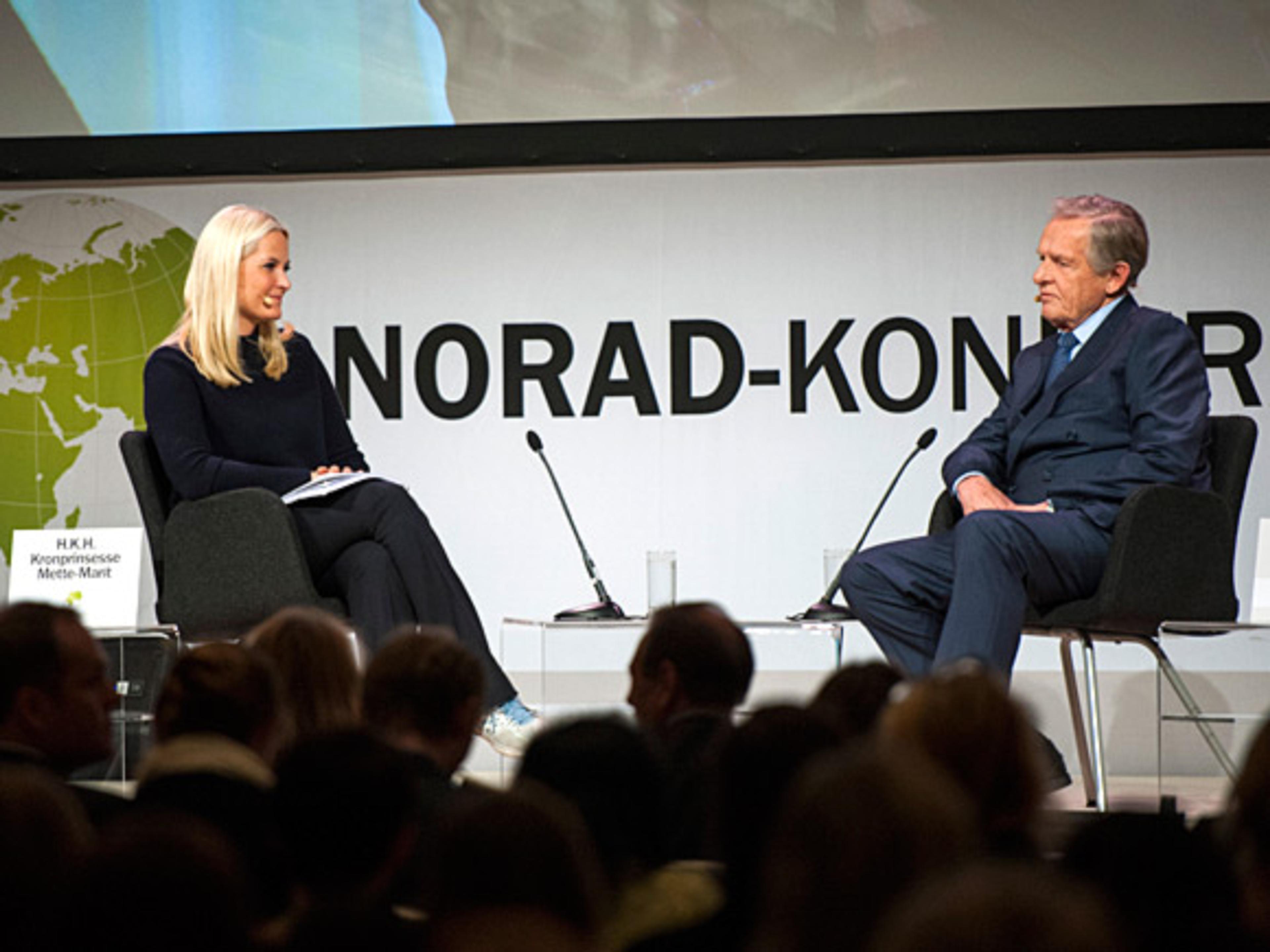 H.K.H. Kronprinsessen deltok på Norad-konferansen i dag, der hun ledet en samtale med spesialrådgiver Tore Godal om hans livslange innsats for global helse. H.K.H. Kronprins Haakon var også til stede på konferansen, der årets tema er helse og utdanning.