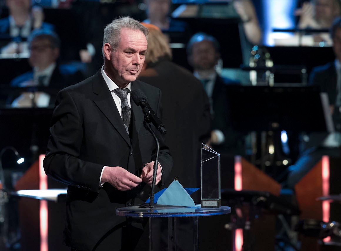 Songar og komponist Sofia Jernberg overrekte Nordisk råds musikkpris til den norske komponisten og organisten Nils Henrik Asheim for verket Muohta (Snø).
