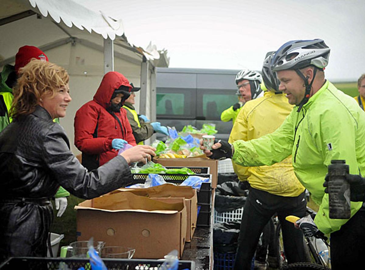 Det regnet og blåste kraftig lørdag morgen, men 8 300 syklister stilte til start. Prinsessens første stopp var kl. 12 ved matstasjonen på Hå Gamle Prestegård og da hadde regnet gitt seg. Prinsessen hjalp til med å dele ut saft til syklistene før ordfører Terje Mjåtveit inviterte henne og representanter fra Nordsjørittet og Norsk Revmatikerforbund inn til kaffe og lefser.