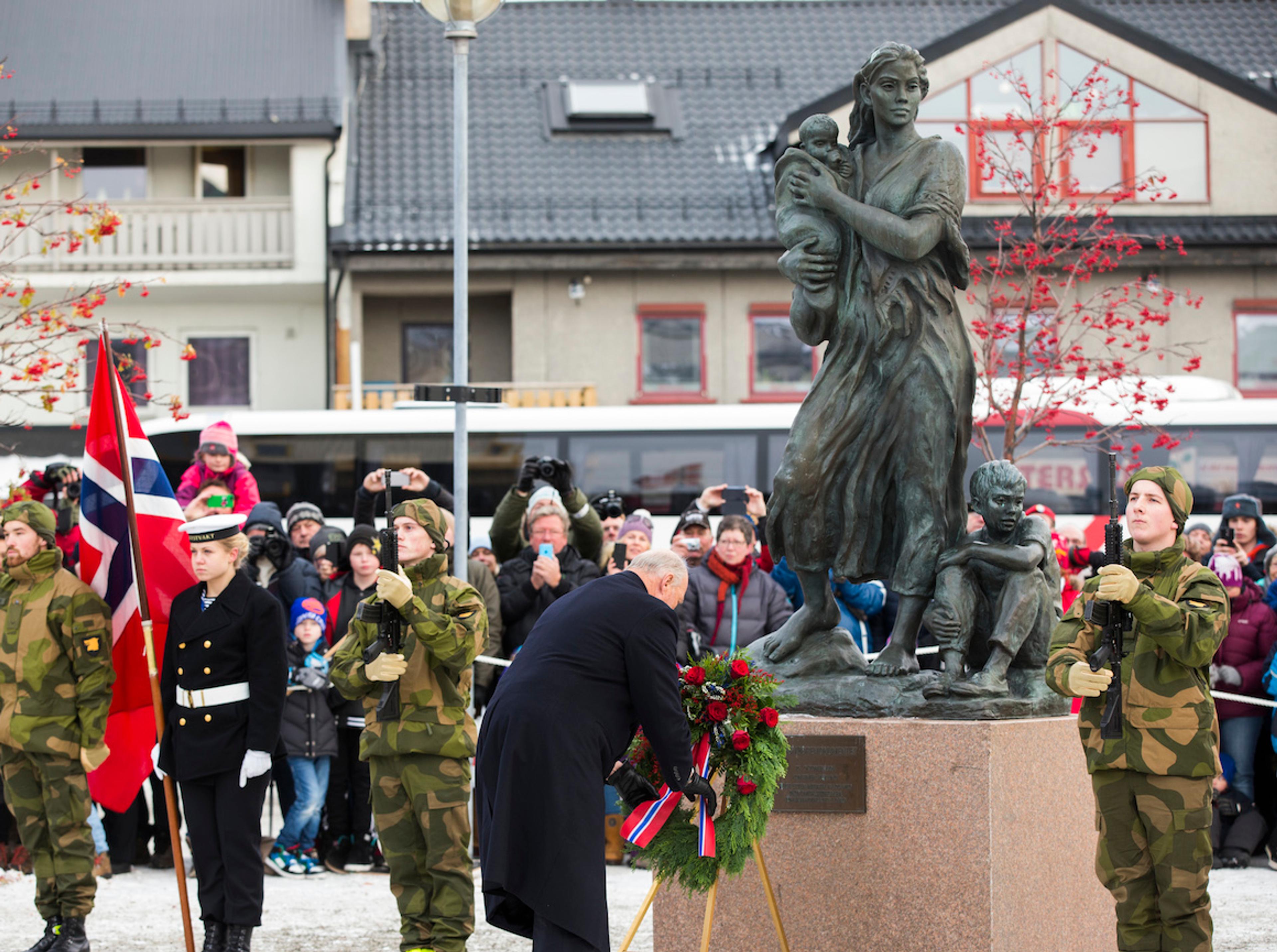 Etter talene la Kong Harald ned krans ved Krigsmødremonumentet. Det ble avholdt ett minutts stillhet før den russiske og den norske nasjonalsangen ble spilt.