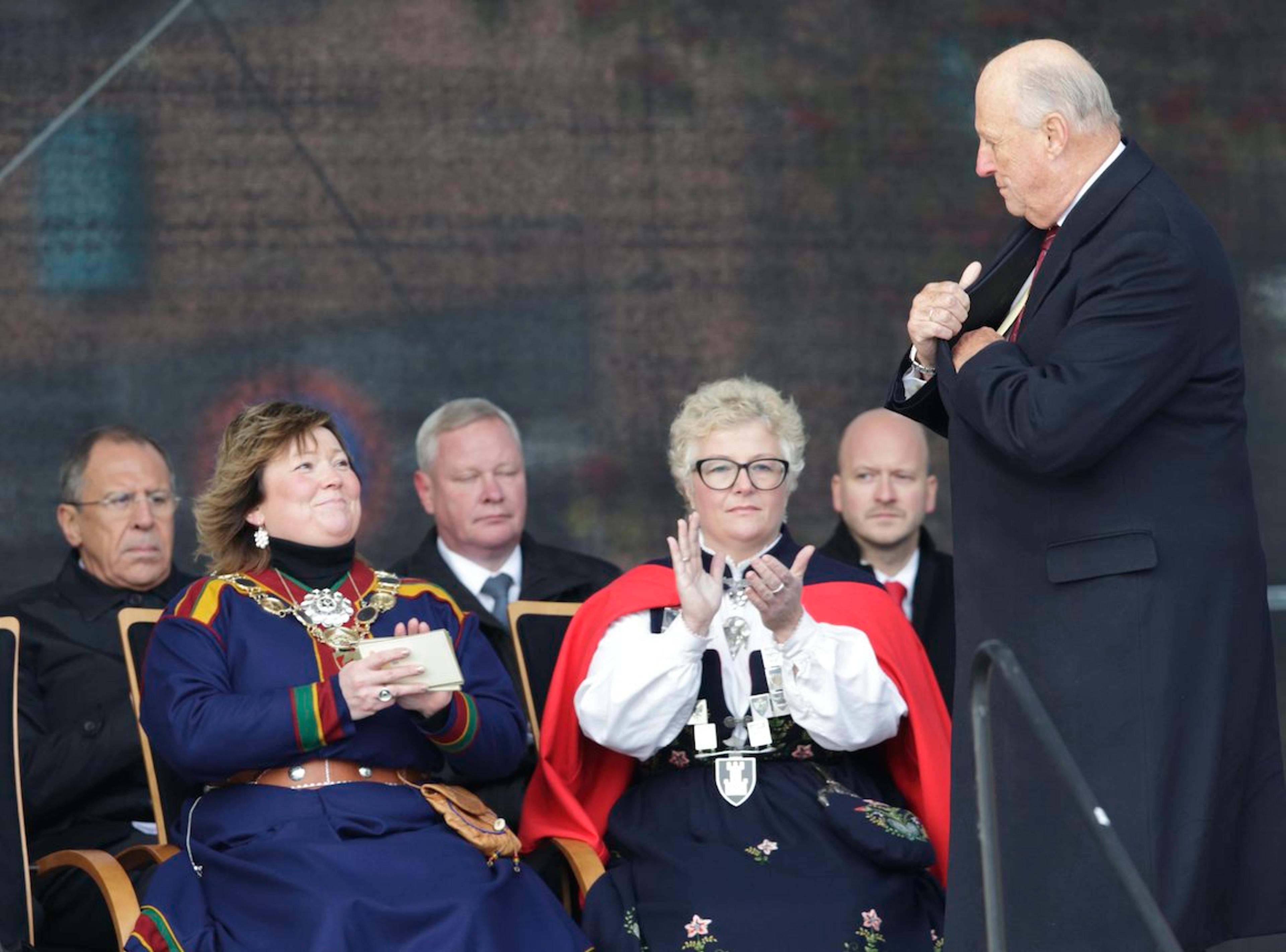 Den høytidelige markeringen fant sted på torget i Kirkenes, der både norske og russiske veteraner var til stede, i tillegg til Russlands utenriksminister, Sergej Lavrov. Kong Harald talte: