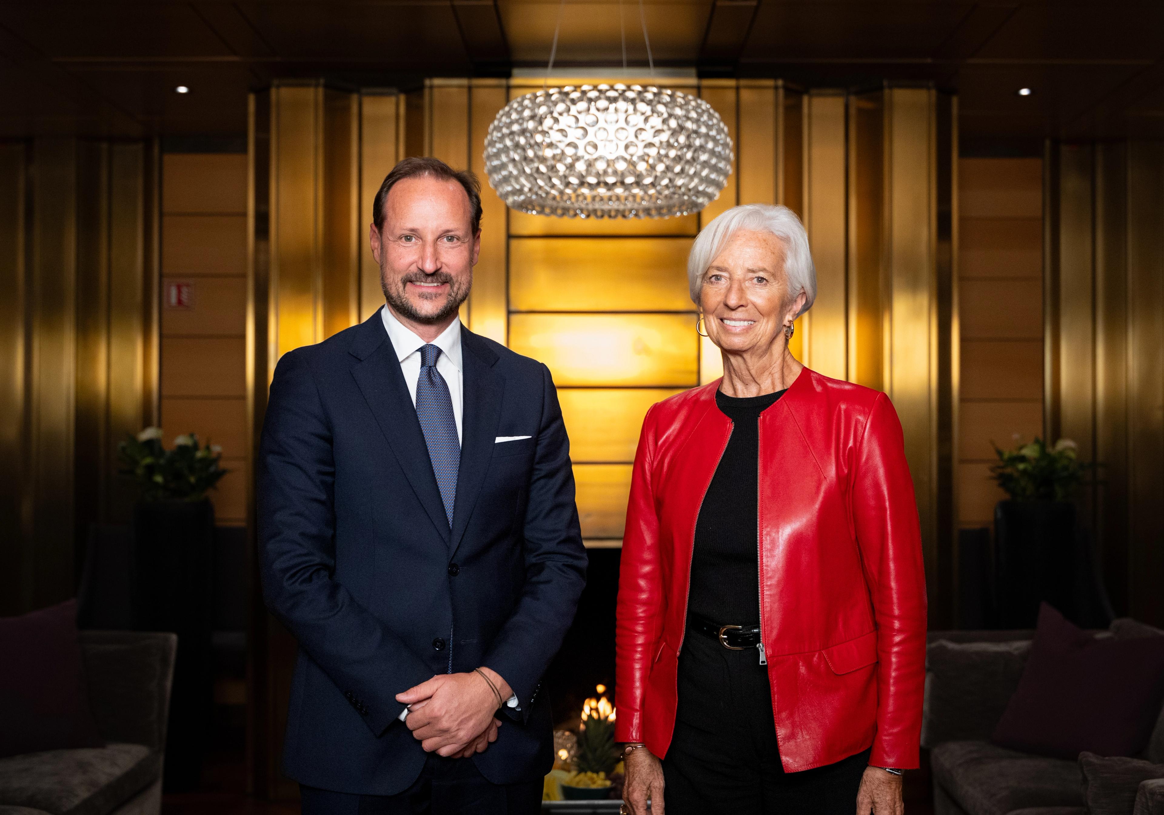 I forkant av konferansen møtte Kronprinsen Den europeiske sentralbanken Christine Lagarde.