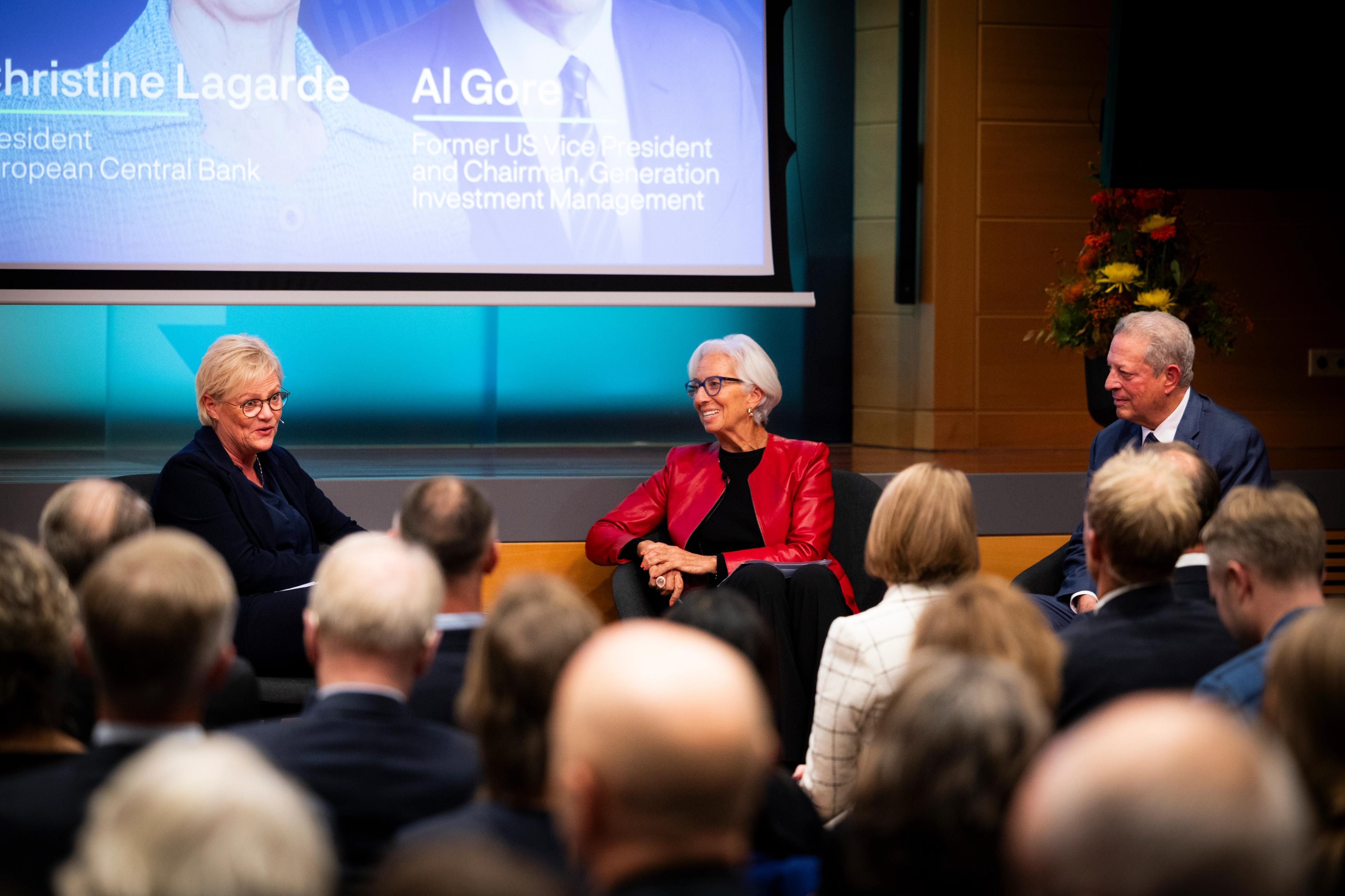 Blant talerne på konferansen var president for Den europeiske sentralbanken Christine Lagarde, og tidligere visepresident i USA, Al Gore.