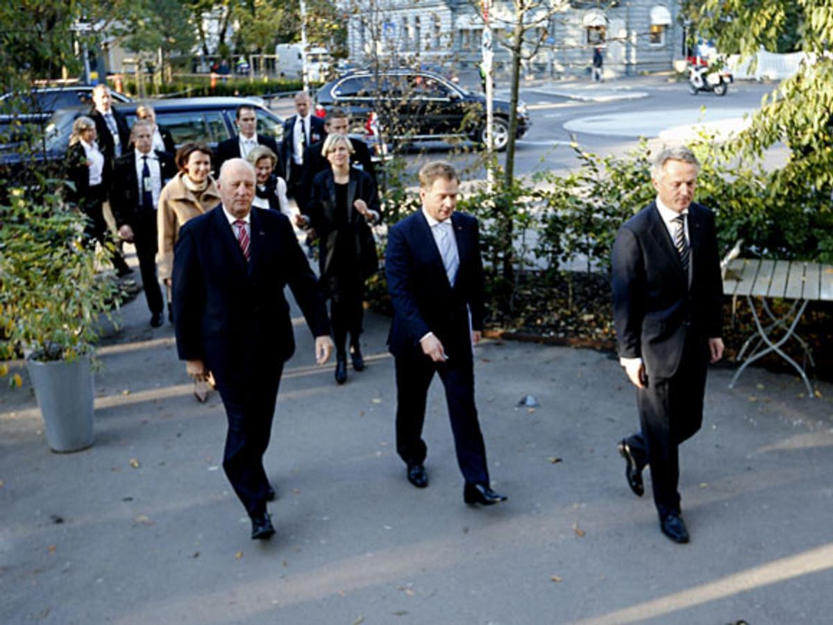 Styrket samarbeid mellom Finland og Norge står i sentrum for statsbesøket disse dagene. I morges ledsaget Hans Majestet Kongen President Sauli Niinistö til Litteraturhuset, der Presidenten holdt foredraget «In the same neighbourhood».