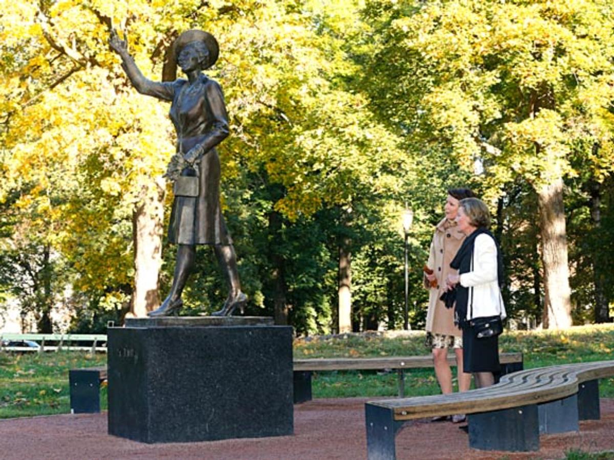 Litteraturhuset ligger like ved Slottsparken, og med det fine høstværet kunne Dronningen og Presidentfruen spasere tilbake til Slottet gjennom parken.