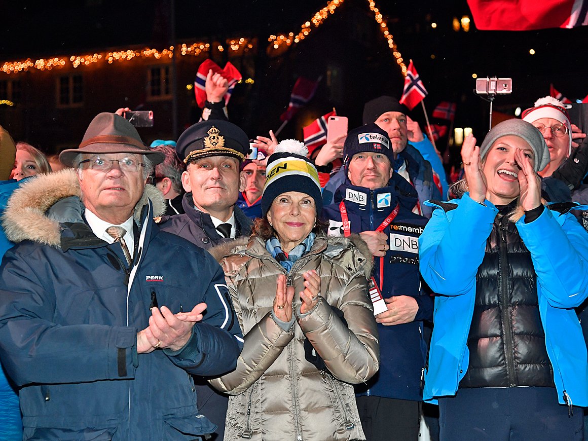 Mennenes VM-utfor ble utsatt på grunn av tåke og tett snøvær. På tribunen fulgte Kronprins Haakon og Kronprinsesse Mette-Marit spent med sammen med Prinsesse Ingrid Alexandra og Prins Sverre Magnus. Til stede var også Dronning Silvia og den svenske Kronprinsessefamilien.