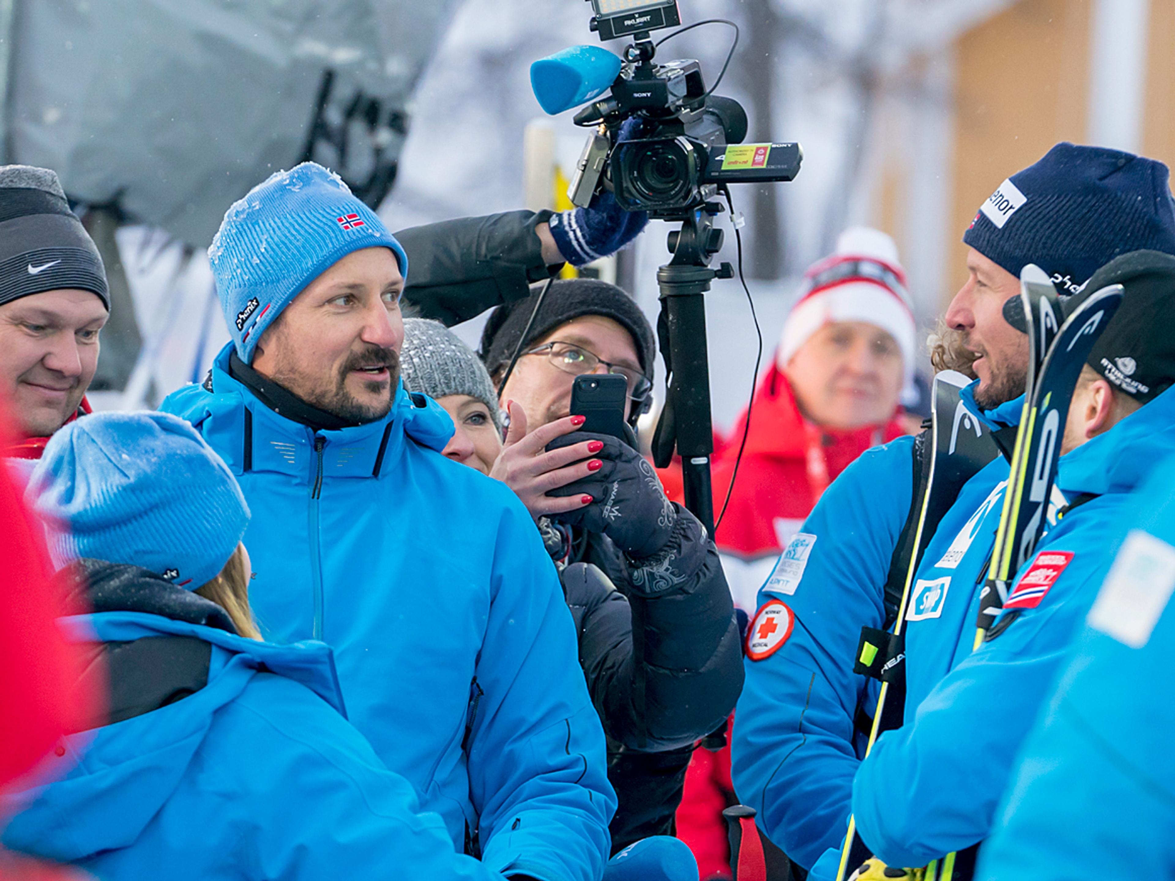 Tidligere på dagen var Kronprins Haakon med på besiktigelse av utforløypa før rennet.