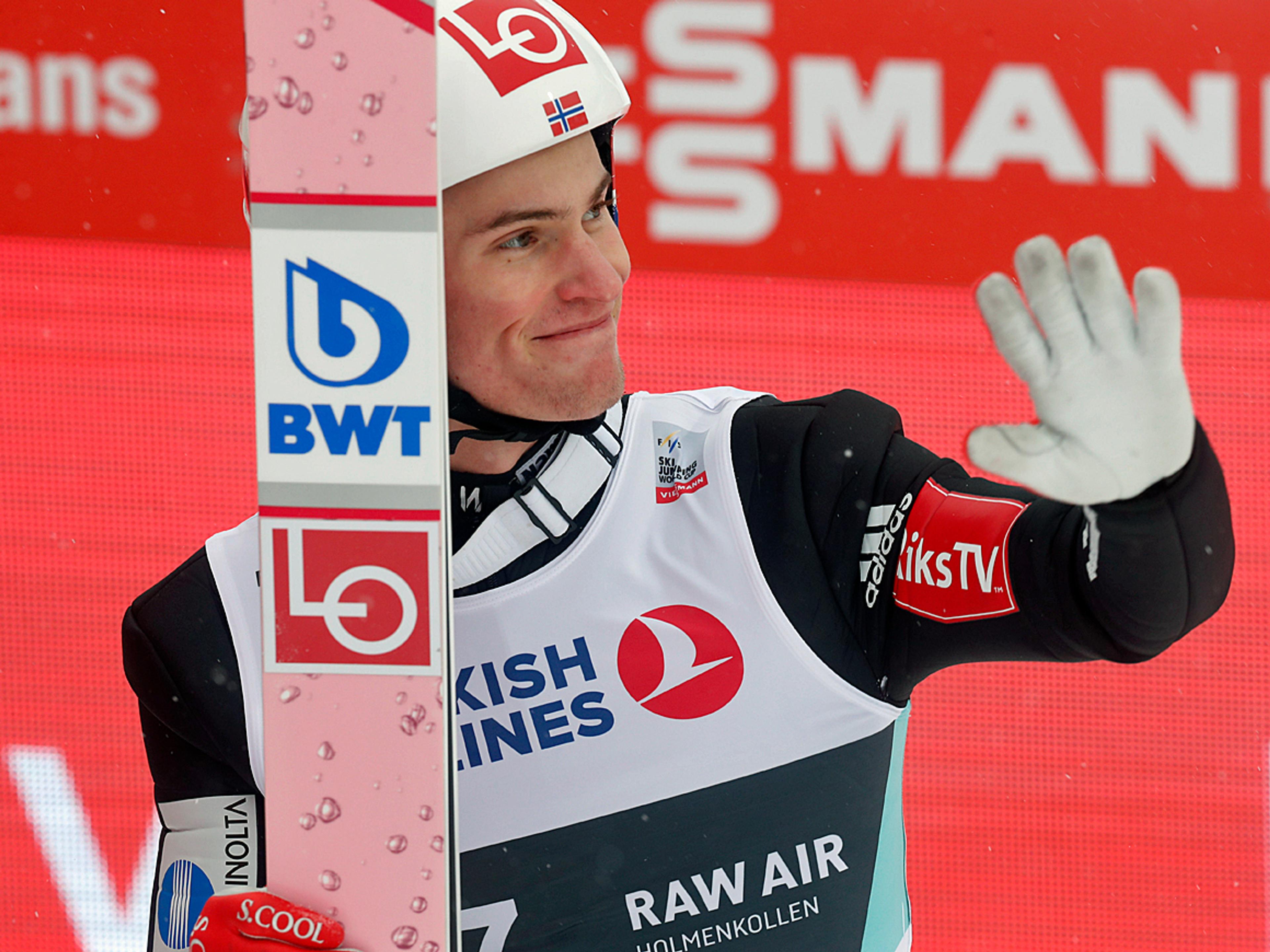 Daniel-André Tande hoppet seg opp fra 8.-plass til seier i mennenes hopprenn. Kongefamilien fikk med seg den spennende avslutningen fra tribuneplass.