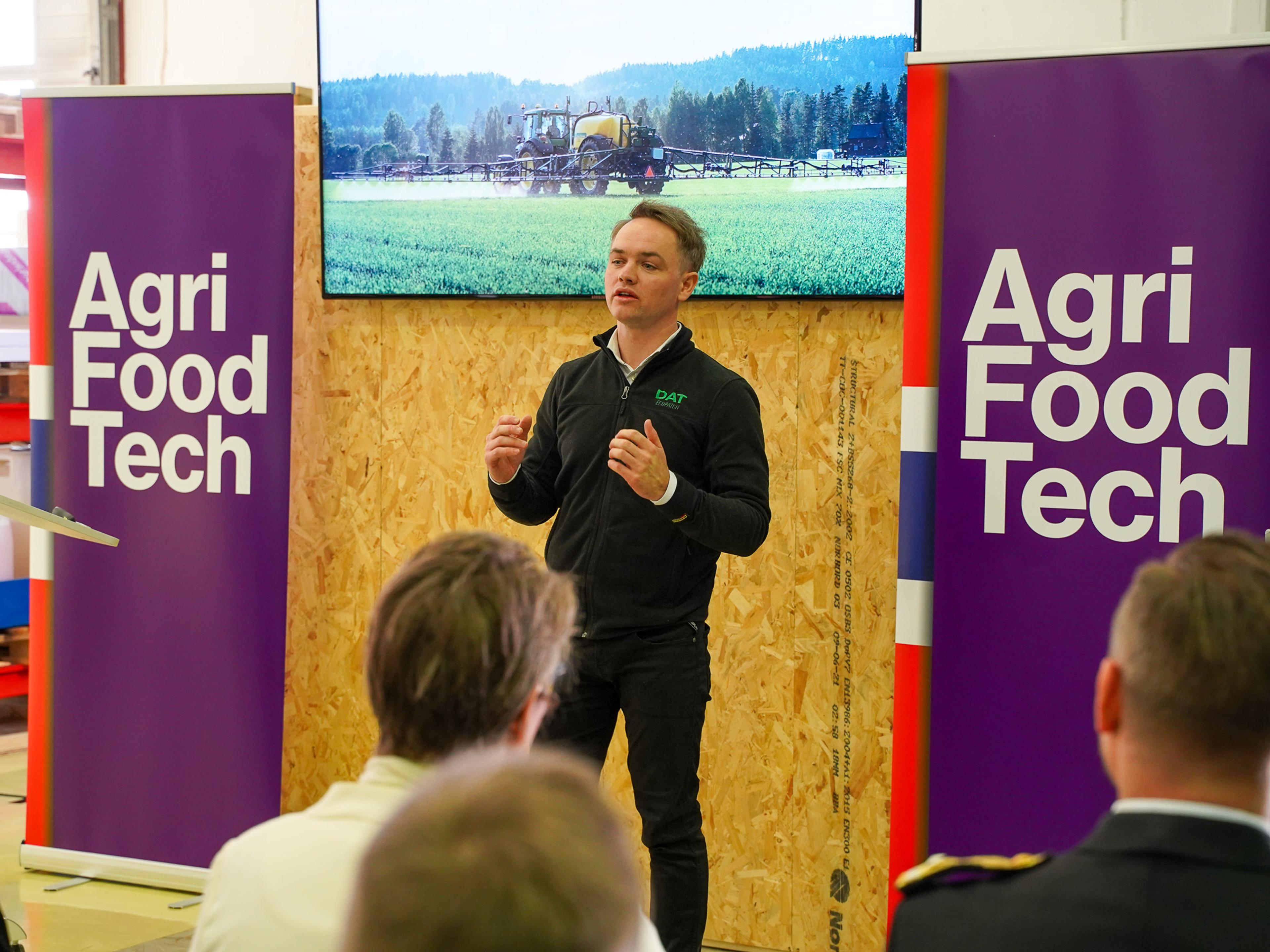 Digifarm var den tredje bedriften som fikk vist seg fram. Gründer og bonde Nils Solum Helset fortalte at bedriften bruker satellittdata til å levere nøyaktige feltgrenser for å kunne drive presisjonslandbruk.