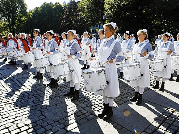 Dronning Sonja overvar den spesiallaga festtilstellinga saman med over 1000 gjester. Dei aller fleste var medlemmer av Norsk sjukepleiarforbund. Forbundsleiar Eli Gunhild By ønskte velkommen, og statsminister Jens Stoltenberg talte til jubilanten.