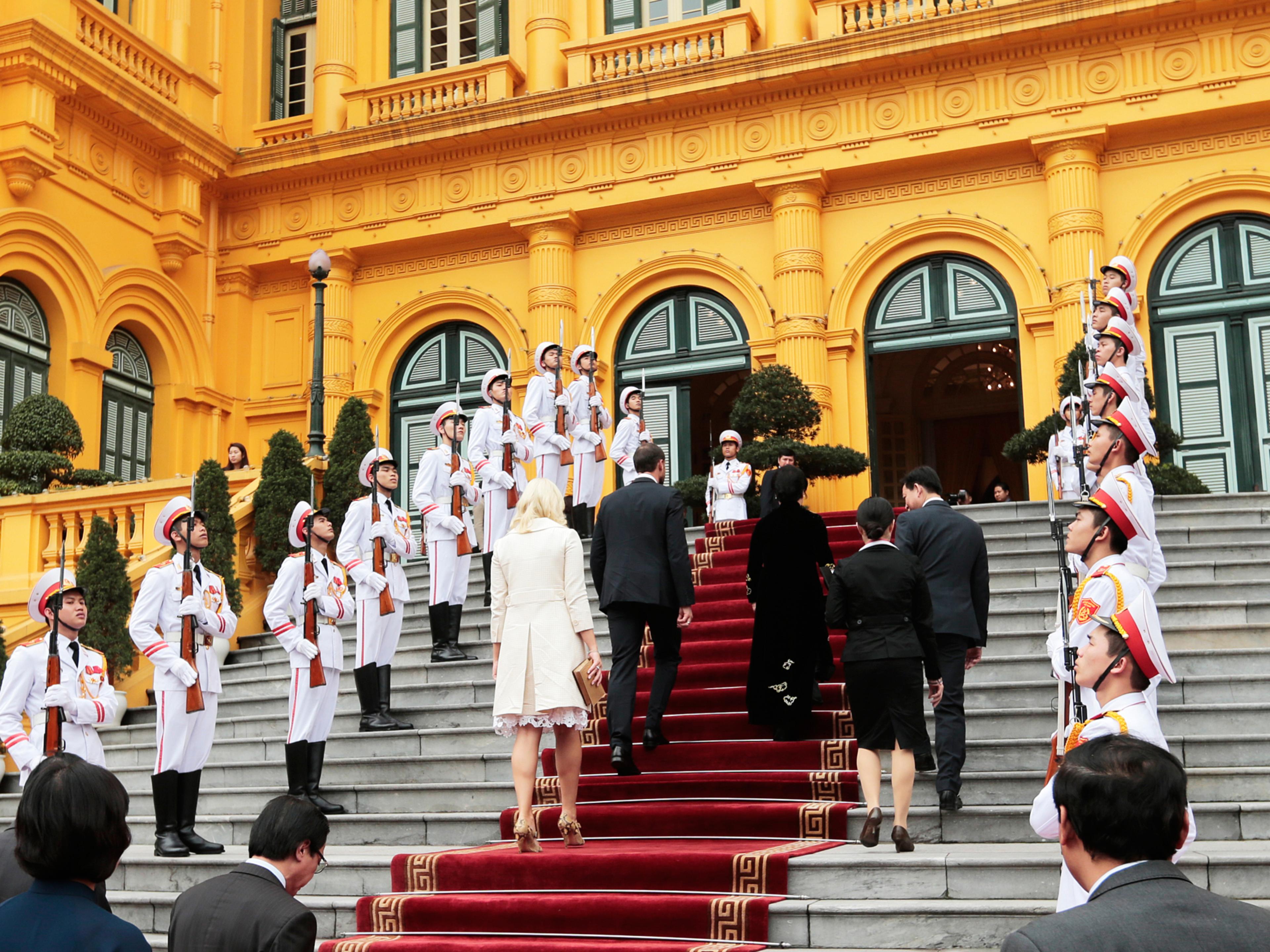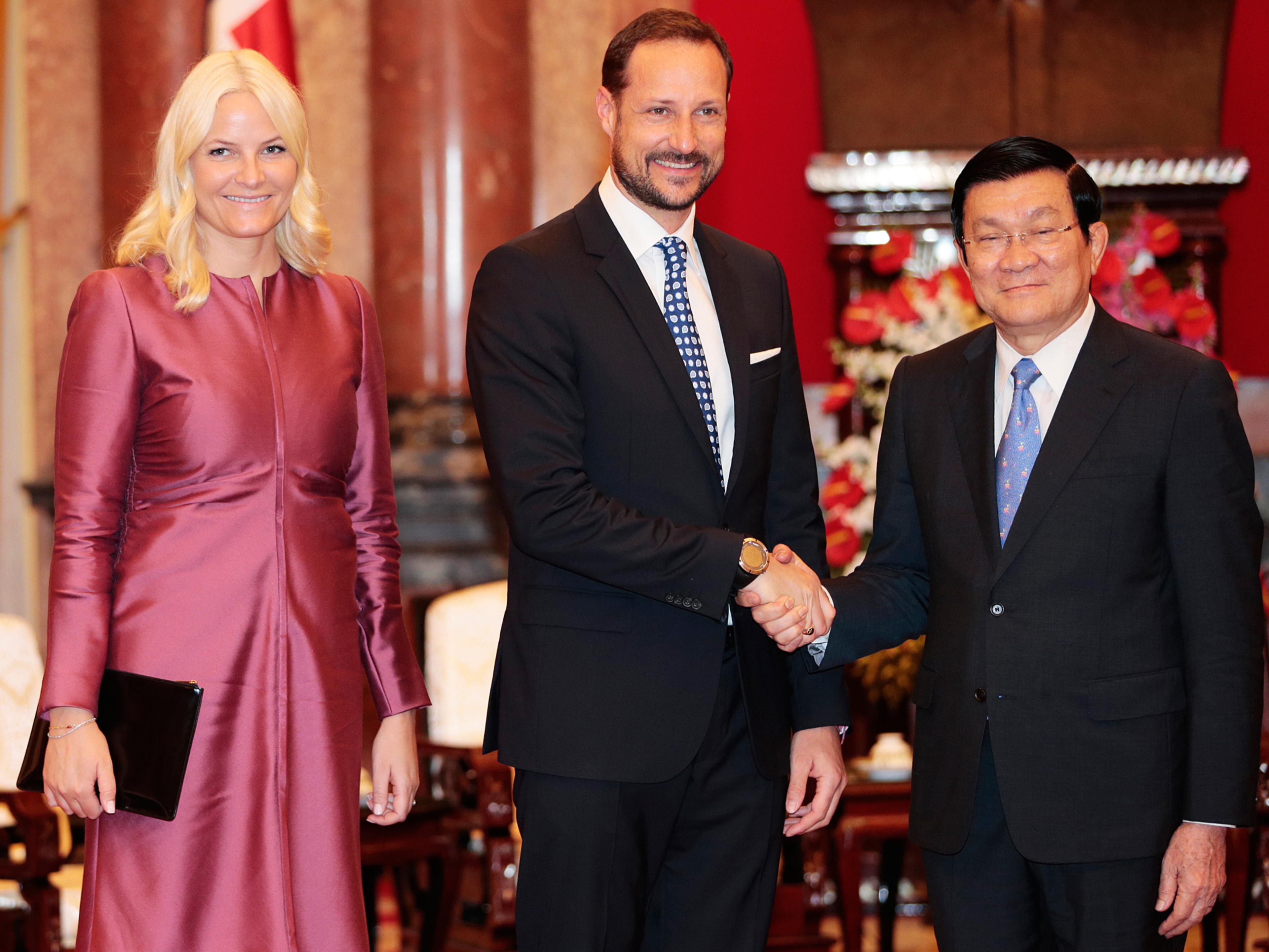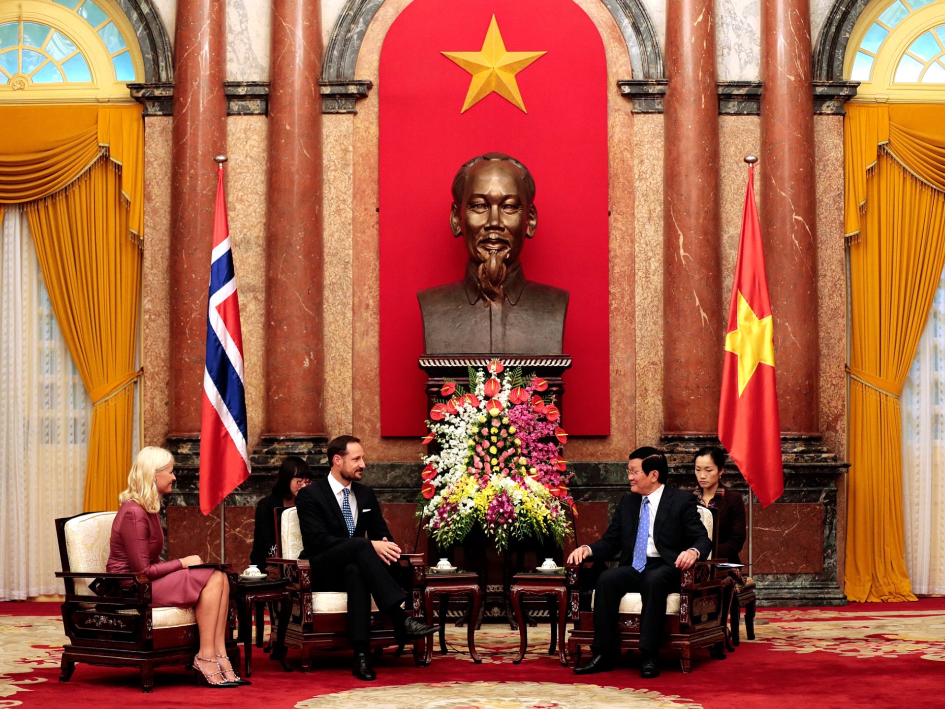 Men dagen startet i Hanoi, der Deres Kongelige Høyheter Kronprinsen og Kronprinsessen avla besøk hos Vietnams president, H.E. herr Truong Tan Sang. Presidenten ba Kronprinsparet overbringe hilsener til Kong Harald og Dronning Sonja, som avla statsbesøk til Vietnam i 2004.