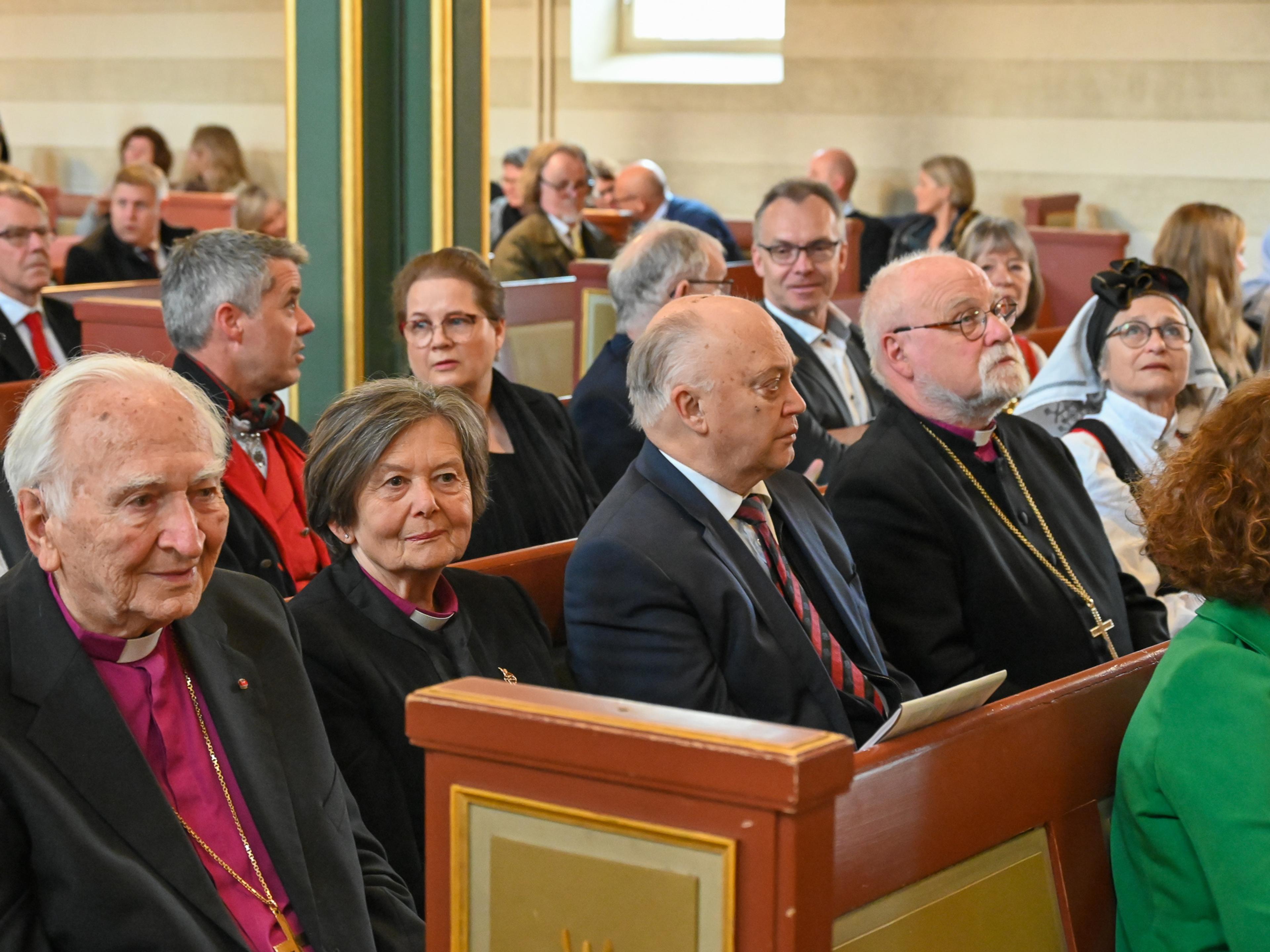 Tre av Borgs tidligere biskoper, Andreas Aarflot, Helga Haugland Byfuglien og Atle Sommerfeldt, var til stede i den fullsatte domkirken under vigslingsgudstjenesten.