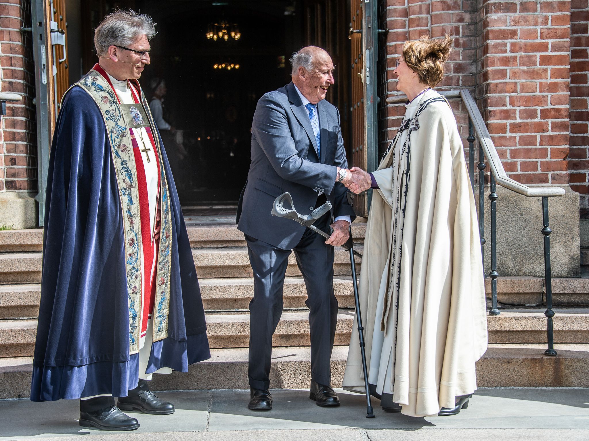 Kong Harald ble tatt imot på kirketrappen og ledsaget inn i domkirken av preses i bispekollegiet, biskop Olav Fykse Tveit. Deretter fulgte den kirkelige prosesjonen med blant annet den nye biskopen i Borg.