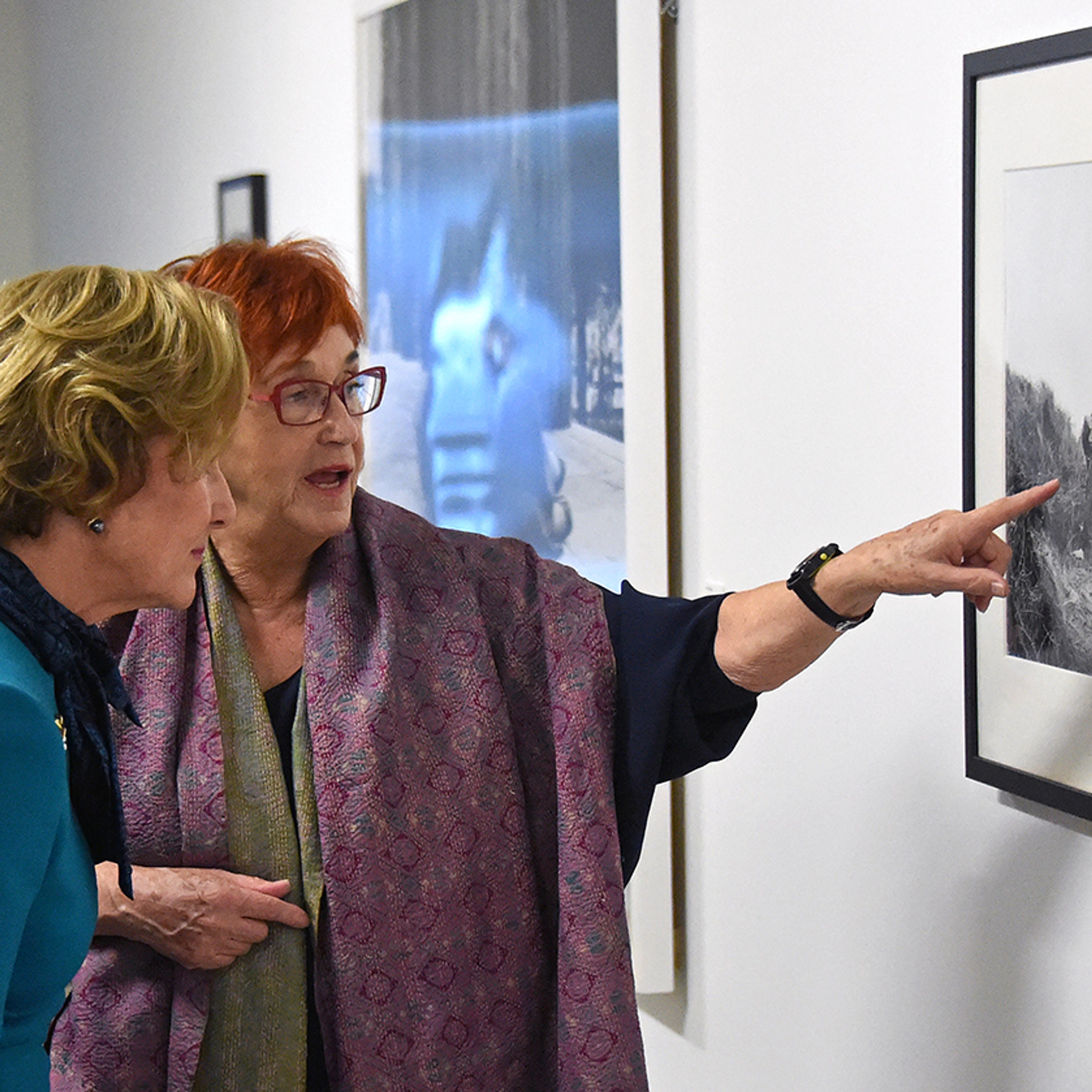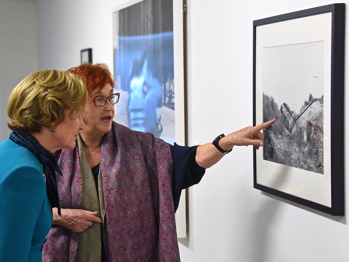 Dronning Sonja fikk møte både Valie Export, A K Dolven og Alexandra Pirici i dag, mens hun utforsket utstillingen. Det ble også anledning til et møte med kunstnerparet Fulvia Carnevale og James Thornhill, som orienterte Dronning Sonja om verket "Foreginers Everywhere".
